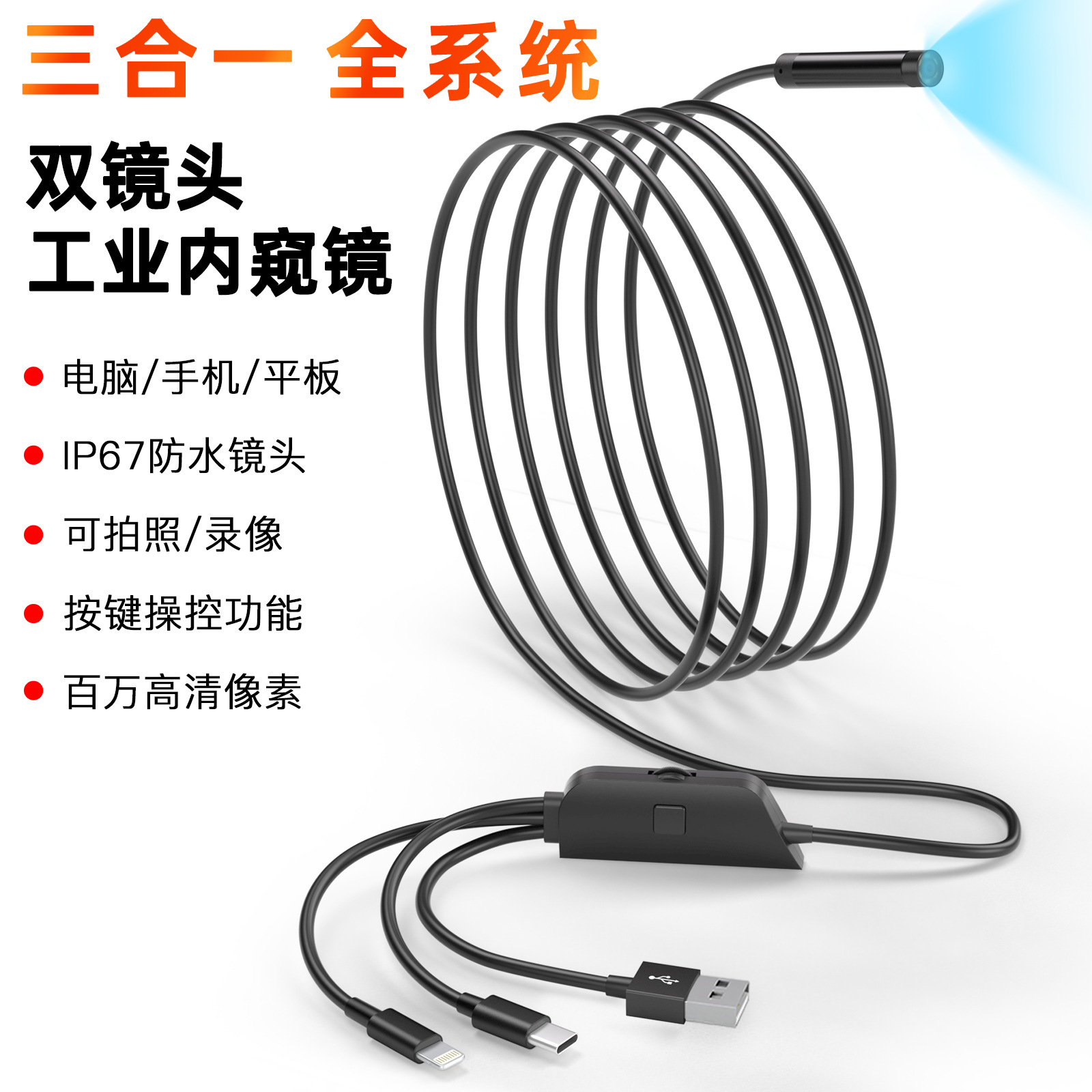 새로운 애플 안드로이드 휴대 전화 컴퓨터 유니버설 듀얼 카메라 내시경 메가 픽셀 산업 내시경