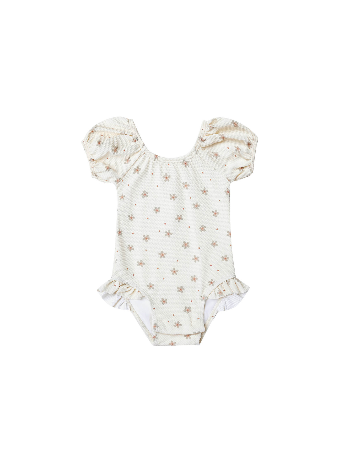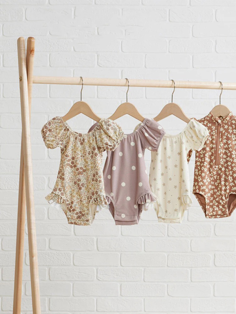 2025 북유럽 스타일 소녀의 귀여운 아기 꽃-인쇄 빠른 건조 선 스크린 수영복 아기 거품 슬리브 수영복