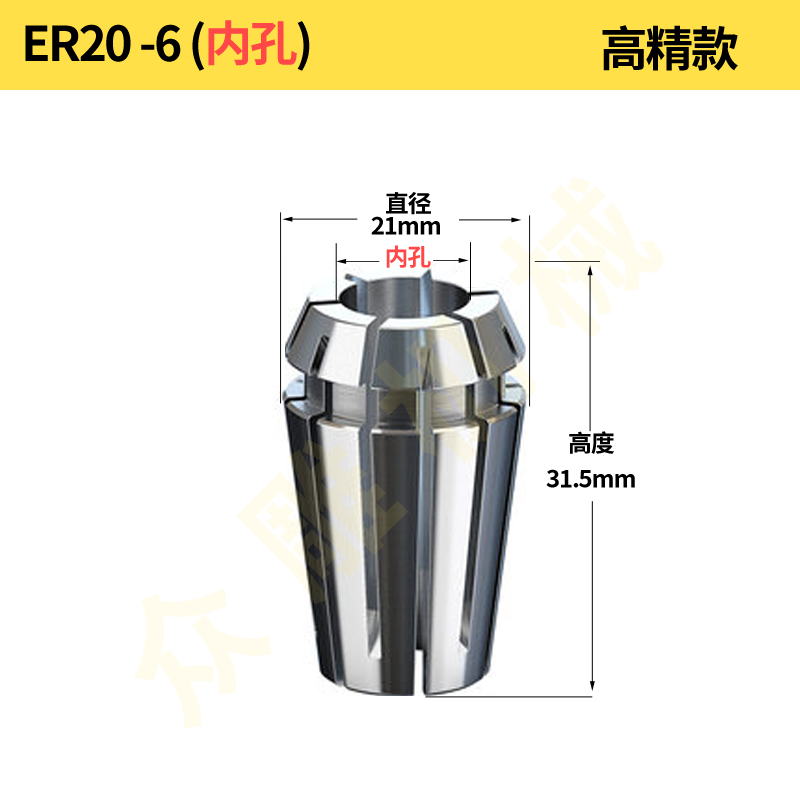 • ER20A형 스프링 척(구멍 직경 3-12.7mm) 내부 구멍 크기를 참고하세요.