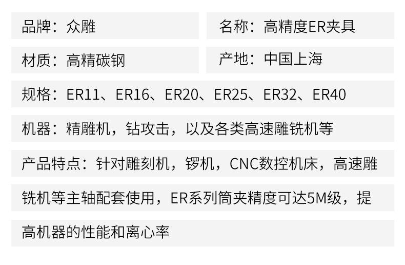 조각 기계 척 스프링 척 고정밀 ER 스프링 재킷 가공 센터 노즐 조각 기계 너트 너트