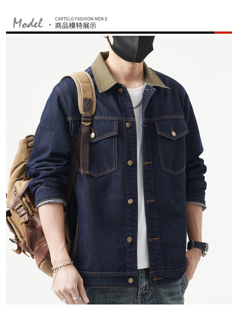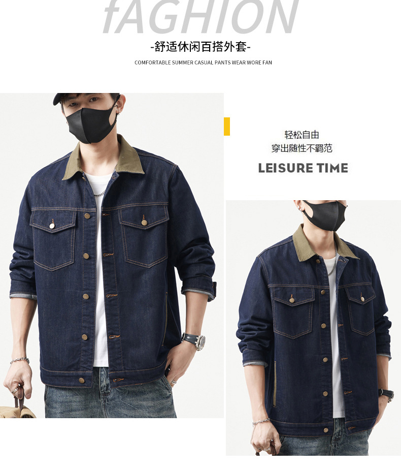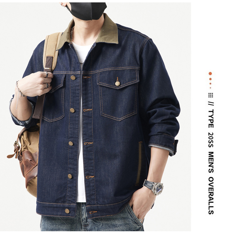 236 # 플러스 사이즈 남성용 봄 새로운 비 페이딩 타닌 데님 재킷 남성용 느슨한 조커 컬러와 일치하는 원래 소 코트스토어 가기
