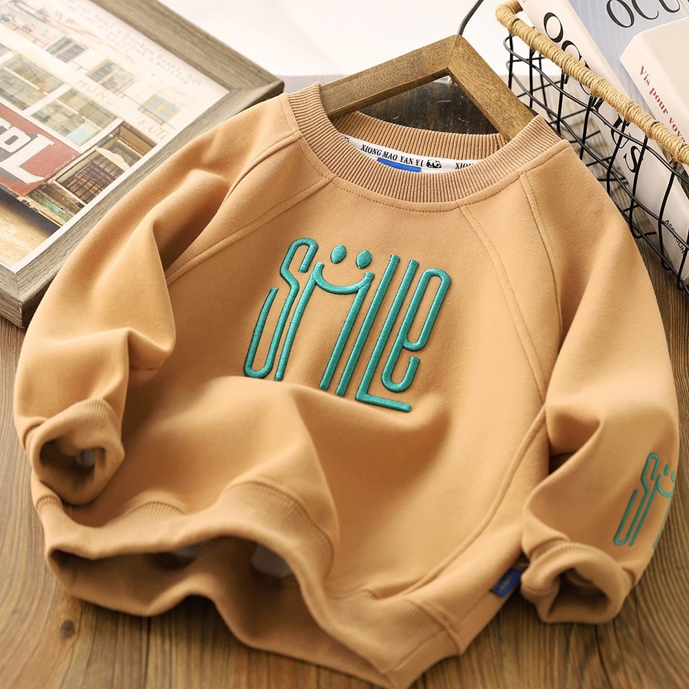 폭발 소년 캐주얼 스웨터 2023 봄과 가을 새로운 어린이 자수 알파벳 터틀넥 긴 소매 중간 세대 새로운 스타일스토어 가기