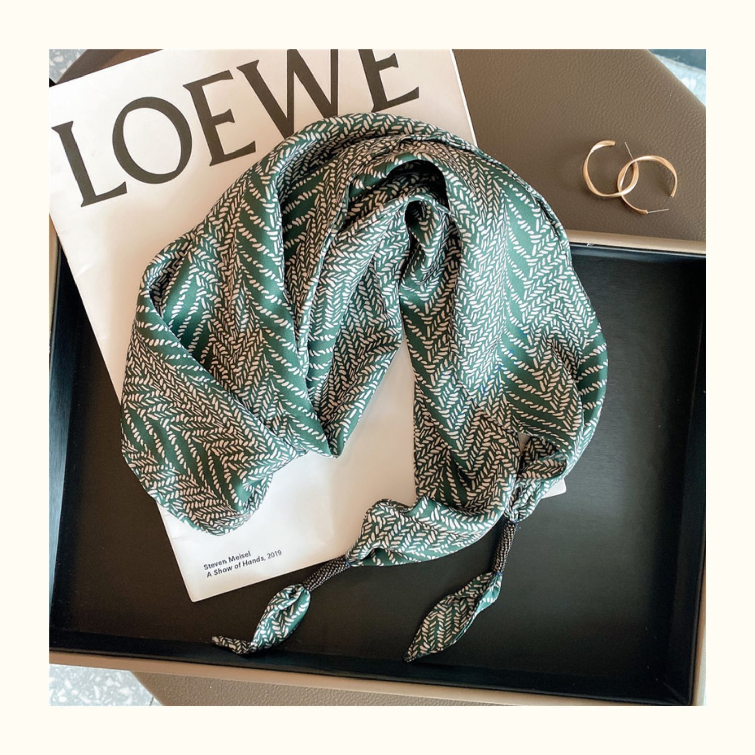 • 삼각 스카프 - 녹색 꽃