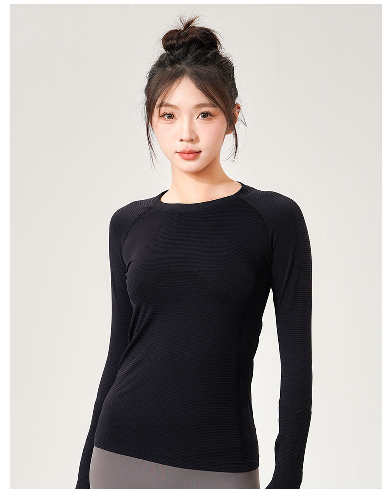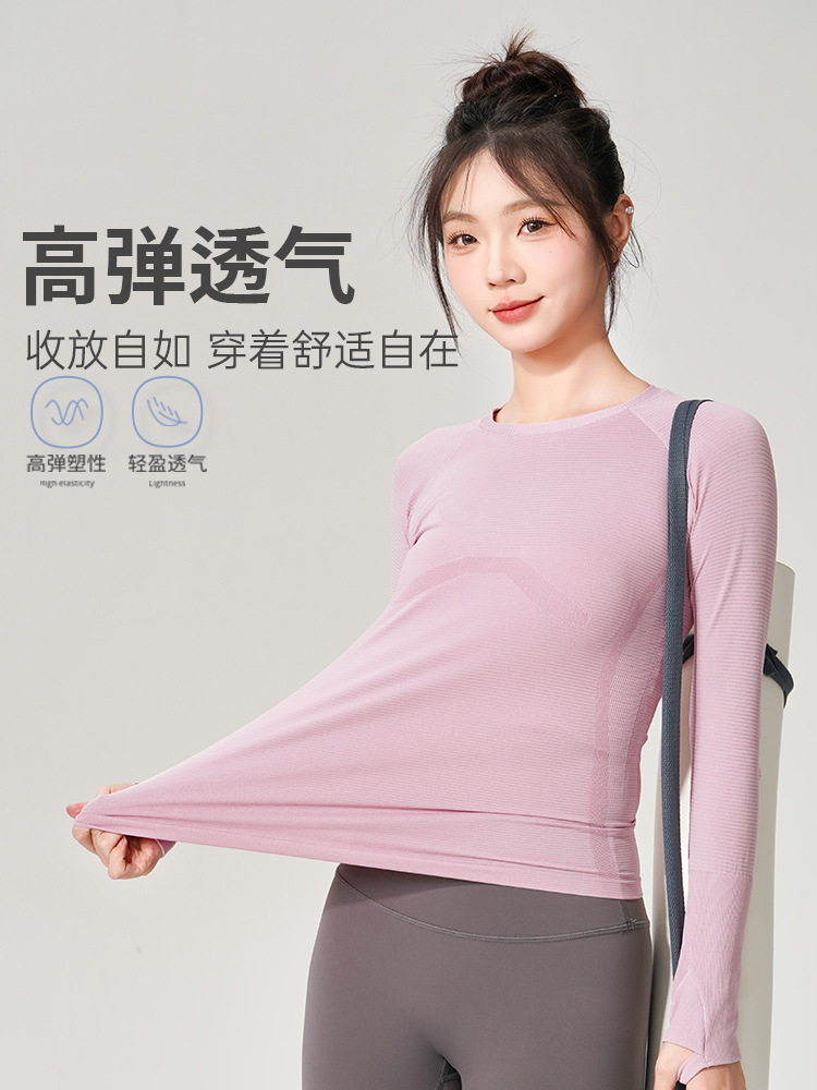 스포츠 탑 여성의 봄과 여름 슬림 핏 라운드 넥 빠른 건조 요가 세트 밝은 달리기 훈련 통기성 피트니스 세트 긴팔스토어 가기