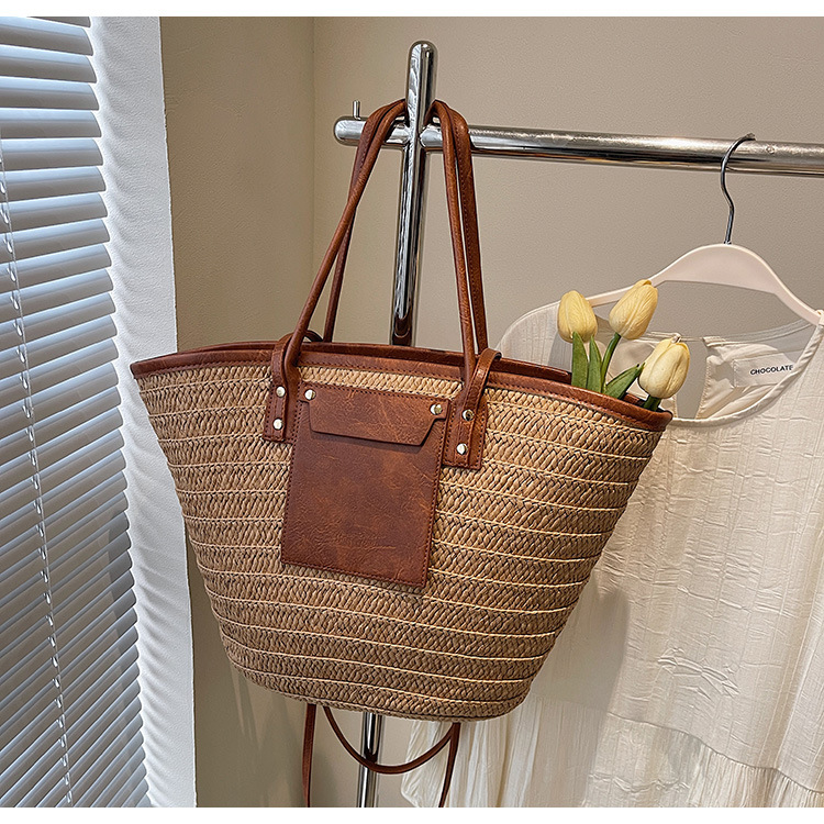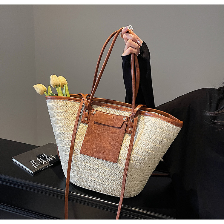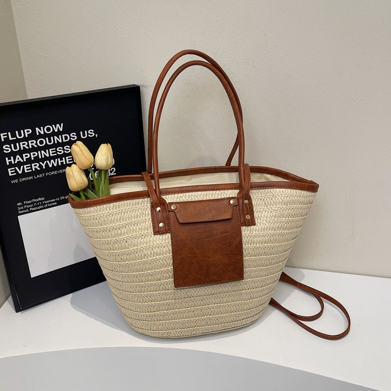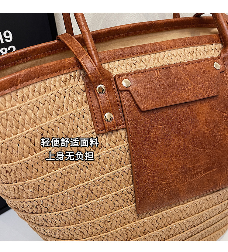 여행 및 휴일 스타일 밀짚 짠 가방 여성 2025 여름 새로운 패션 짠 토트 백 대용량 비치 백스토어 가기