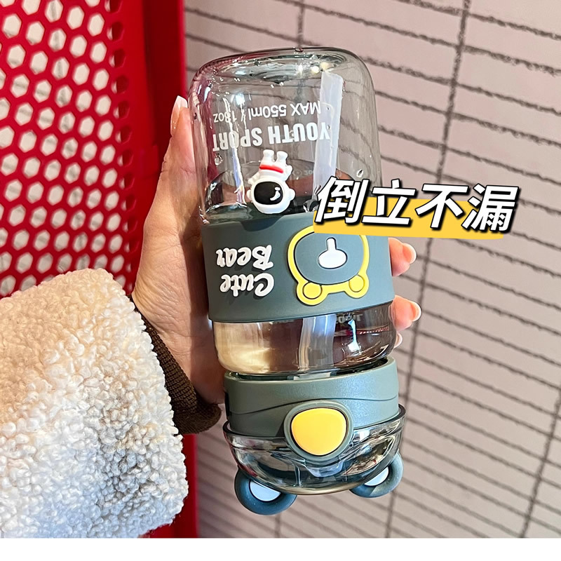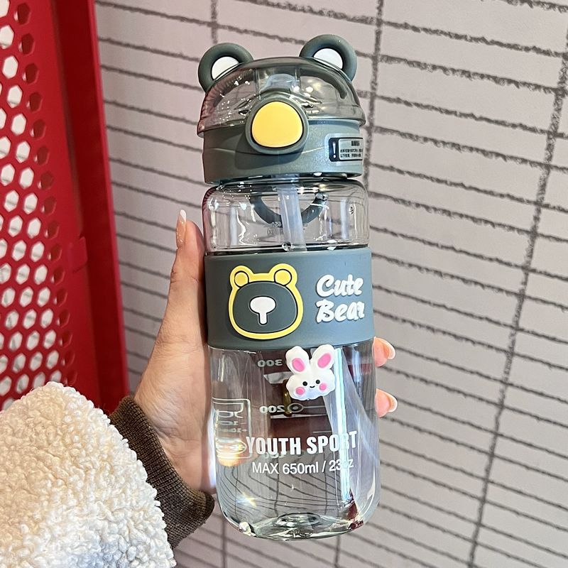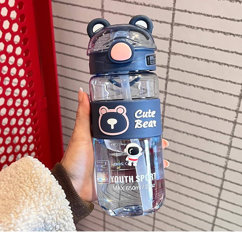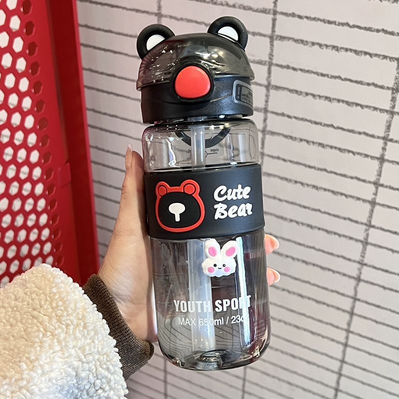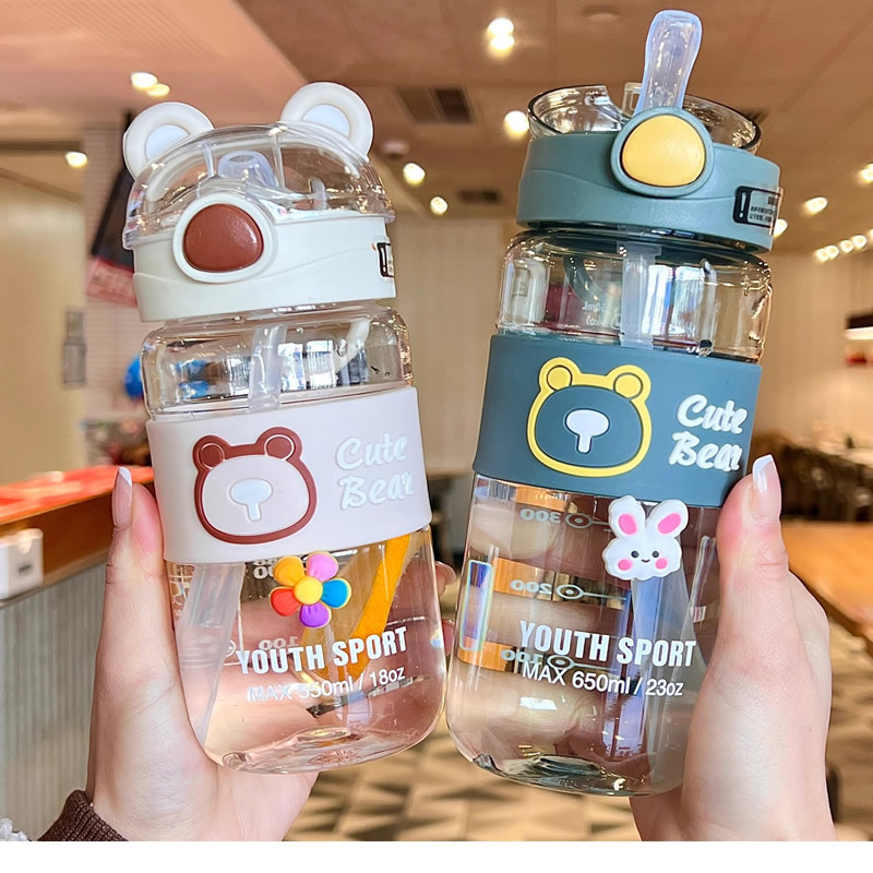 소년과 소녀를위한 새로운 귀여운 학생 어린이 워터 컵 휴대용 안티 스케일 플라스틱 밀짚 컵 높은 컬러 값 물병 안티 드롭