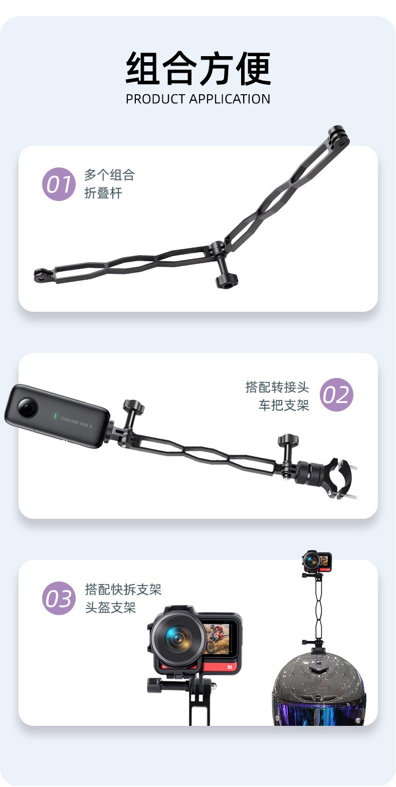 GoPro12/11insta360One X4 용 스포츠 카메라 승마 헬멧 연장 암 연장로드 브래킷스토어 가기