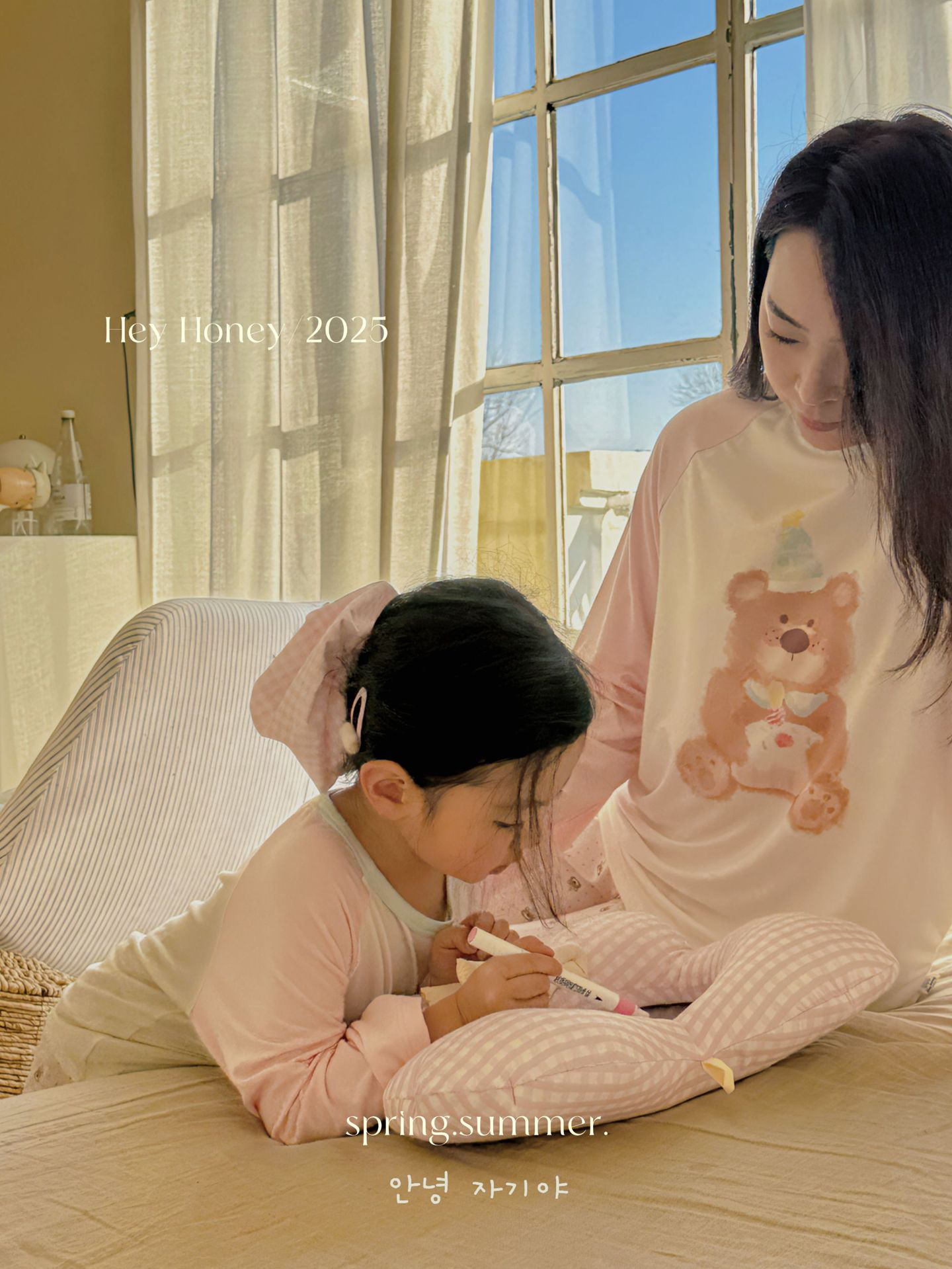 스팟 사이즈 롤 25 봄 여름 HeyHoney 아동 모달 만화 투피스 슈트 홈웨어 잠옷 부모-자식
