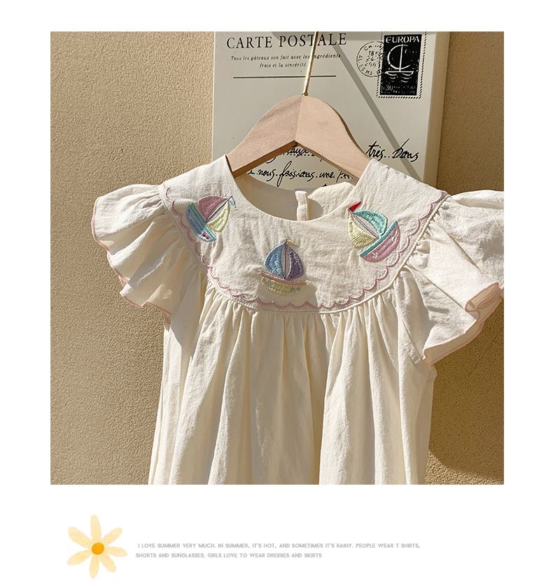 해군 바람 무지개 항해 자수 소녀 원피스 2025 여름 새로운 비행 소매 외국 스타일 어린이 치마 도매스토어 가기