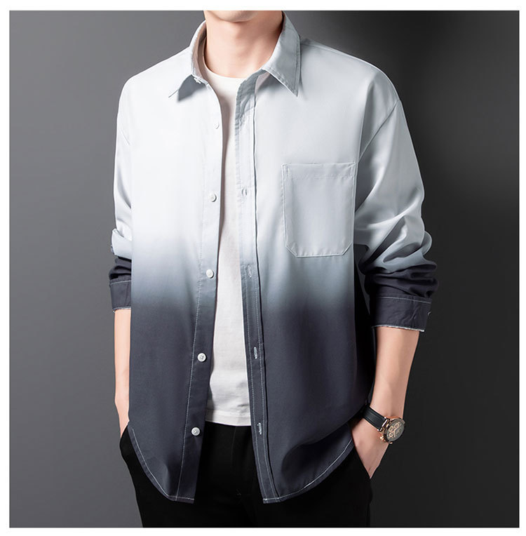 그라디언트 옷깃 셔츠 남자의 봄과 가을 2025 새로운 패션 브랜드 느슨한 올매치 핸섬 캐주얼 긴팔 셔츠