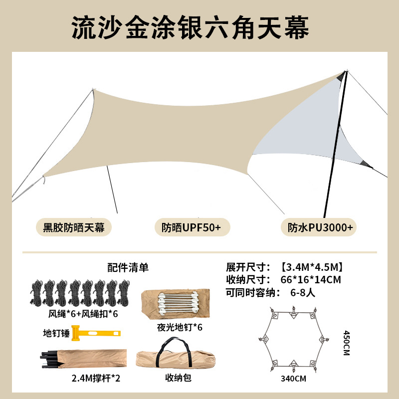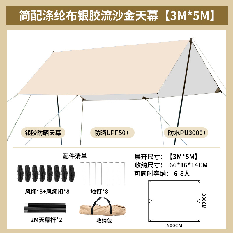 캠핑용 은색 천막 텐트, 차양막, 자외선 차단막, 캠핑 및 야외 피크닉용 방수 텐트, 선물용 방수막