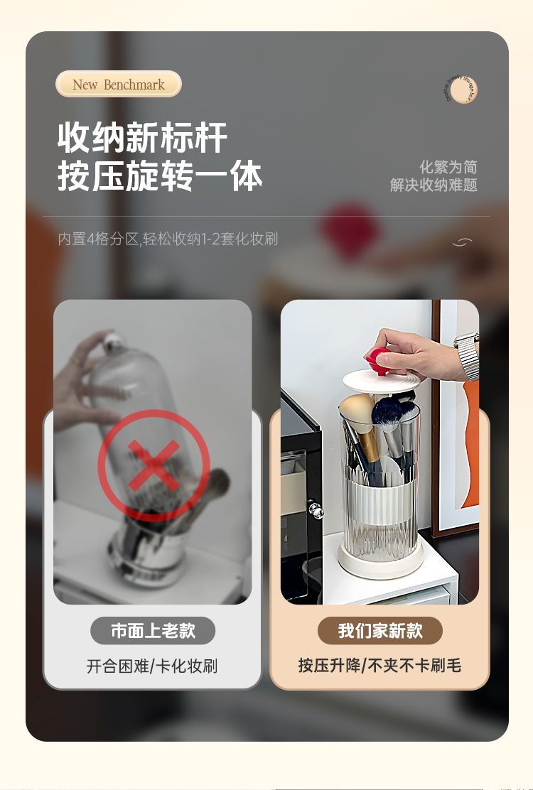 프레스 화장품 브러시 저장 실린더 방진 드레싱 테이블 데스크탑 화장품 보관 상자 회전 리프팅 눈썹 연필 브러시 YD스토어 가기