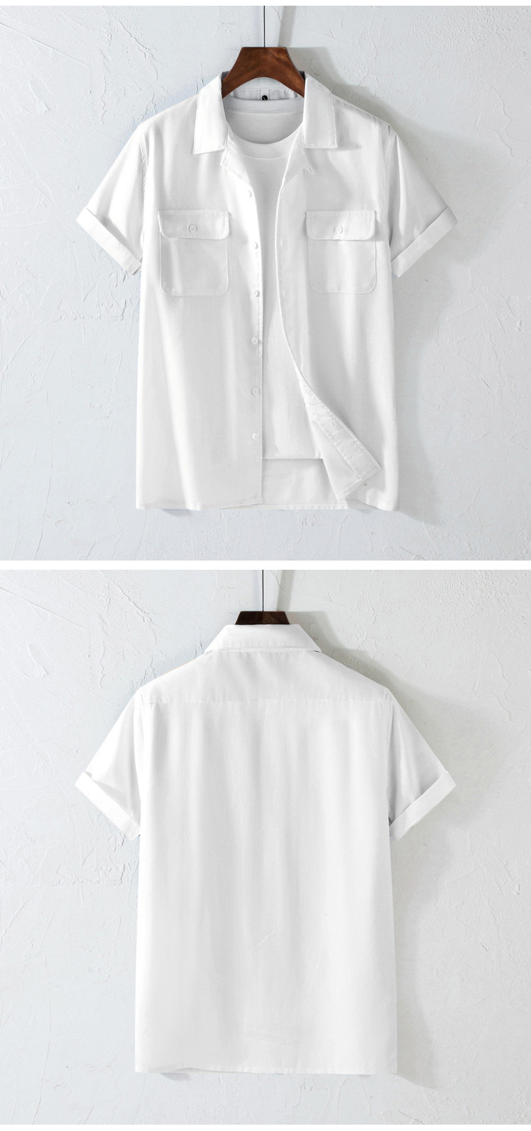 면과 린넨 반팔 쿠바 칼라 남성 셔츠 포켓 아메리칸 레트로 라펠 작업복 통기성 셔츠 일본 플러스 사이즈