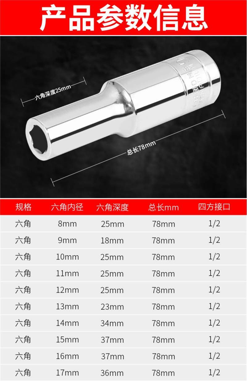 Dafei Hexagon 긴 소켓 헤드 1/2 전기 렌치 소켓 연장 중공 소켓 8-32mm 소켓 렌치