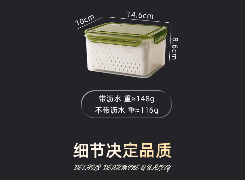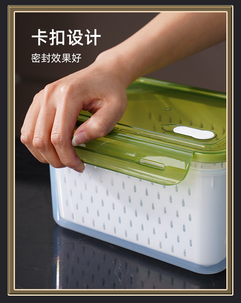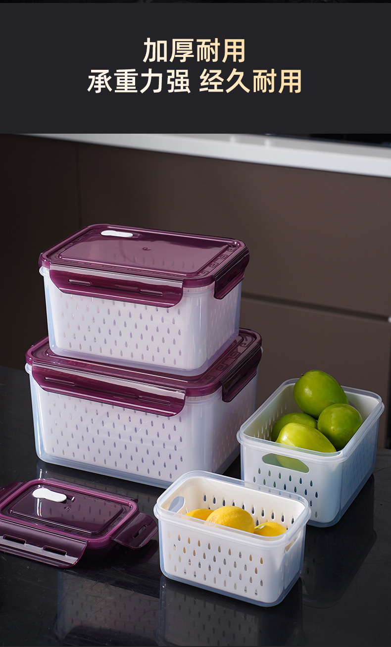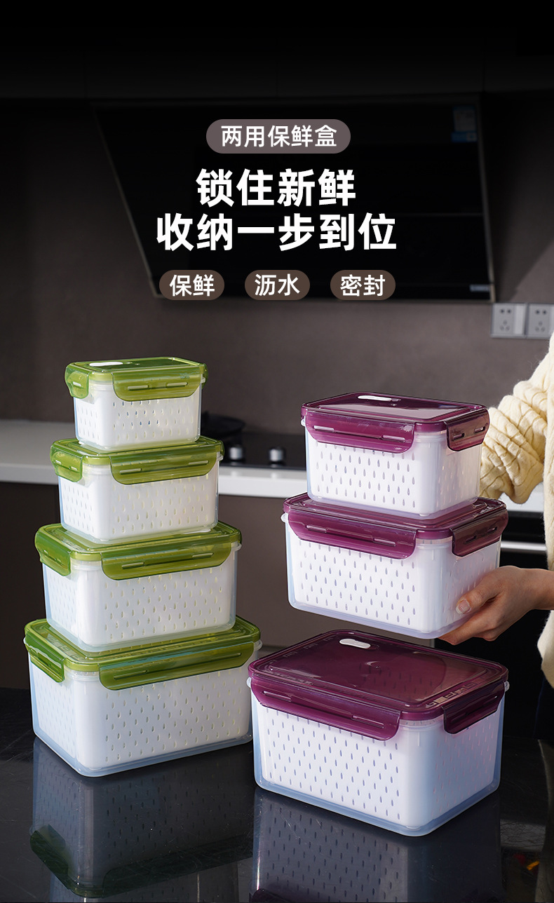 식품 등급 밀봉 이중 목적 배수 보관 상자 주방 냉장고 과일 상자 대용량 사각형 플라스틱 크리스퍼 상자