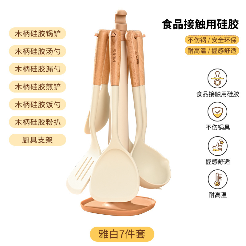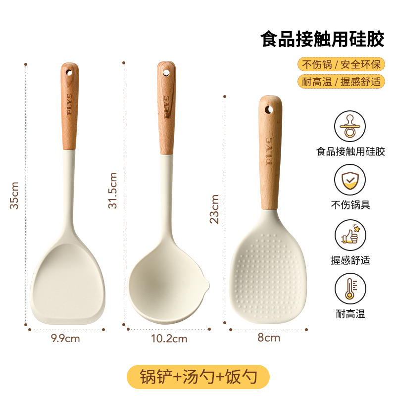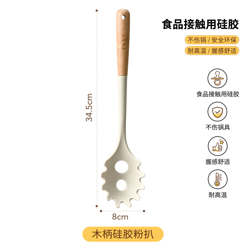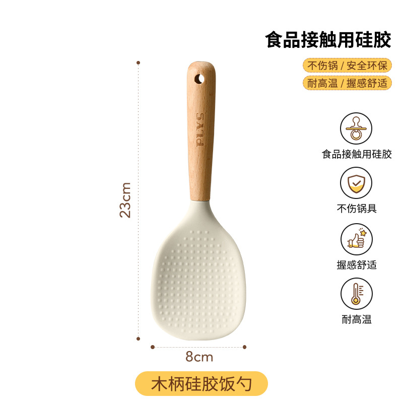 • 너도밤나무 우유 흰색 실리콘 튀김 주걱