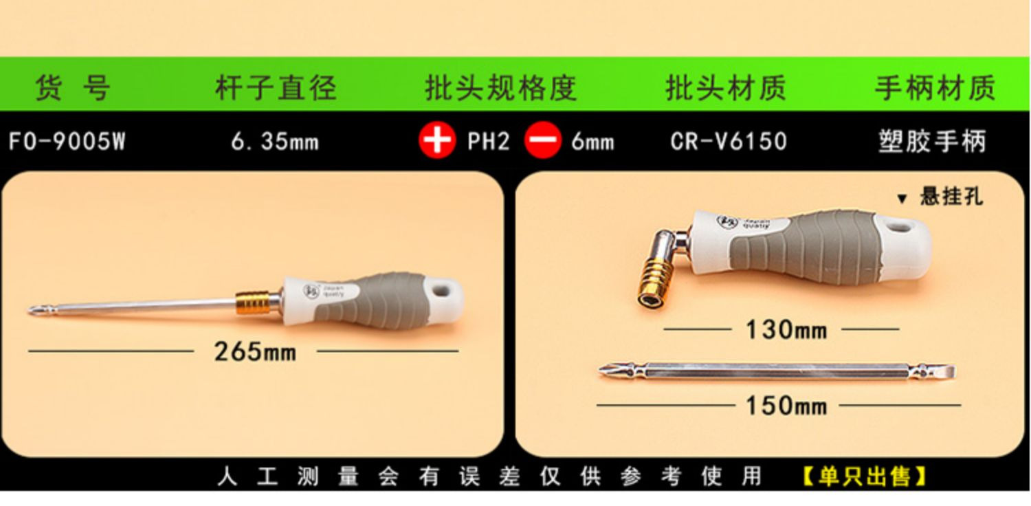 • 6mm 짧은 손잡이 이중 목적 드라이버 FO-9006A