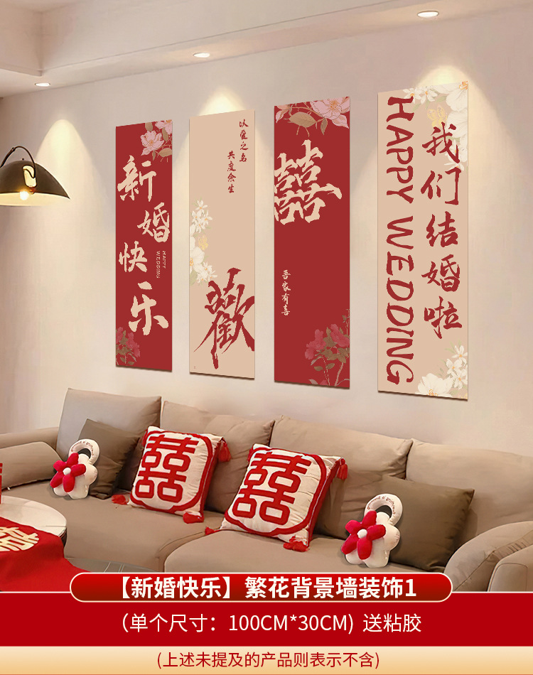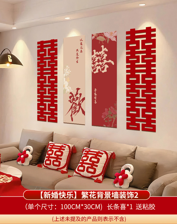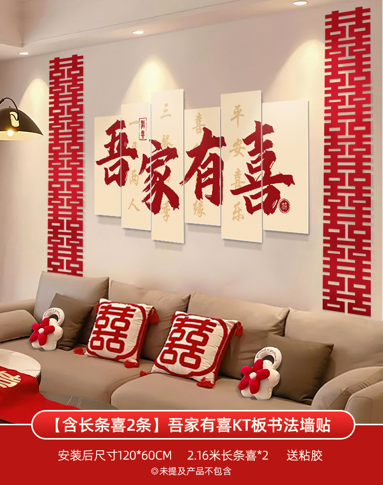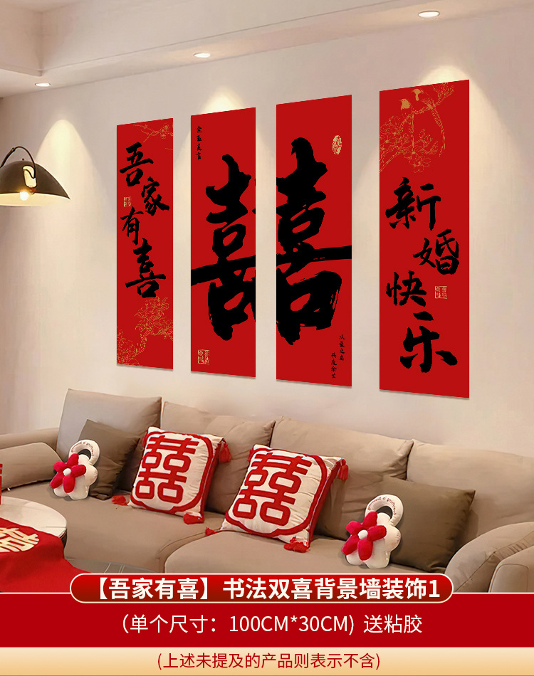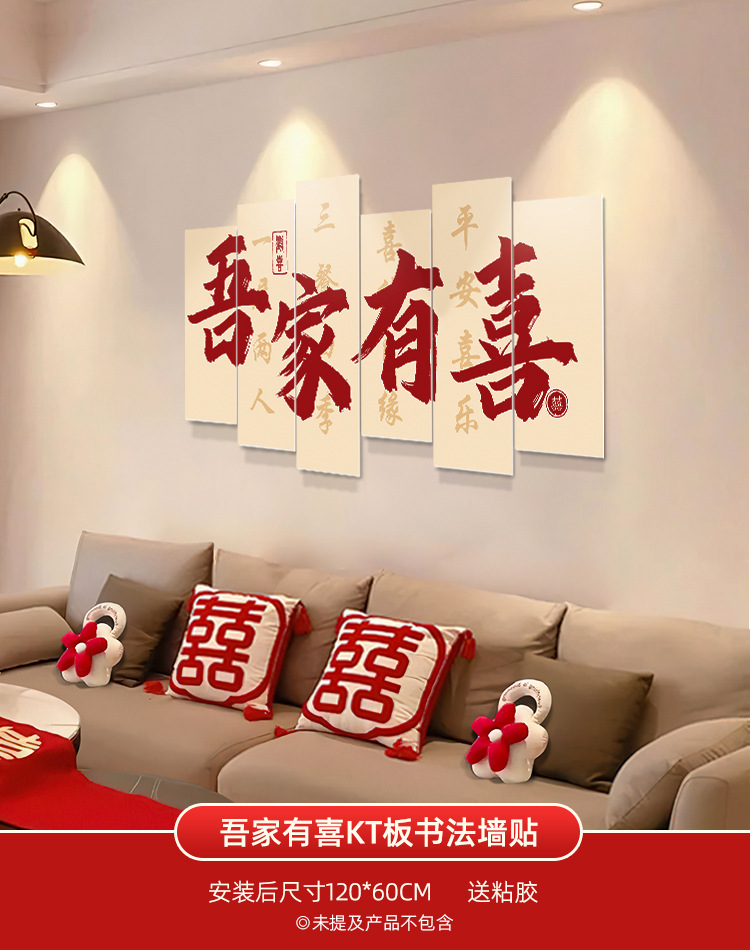 • 새로운 스타일-[우리 가족은 행복합니다] 서예 이중 행복 배경 벽 장식 1