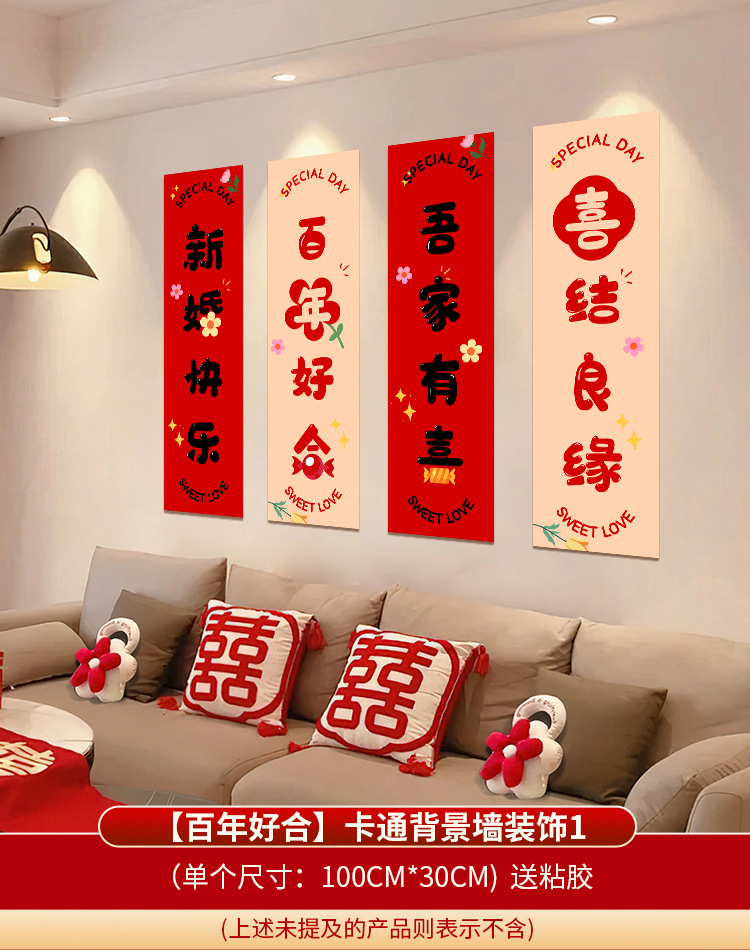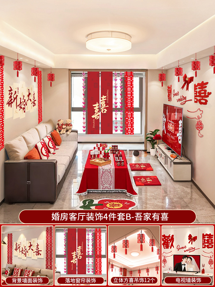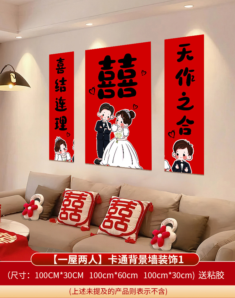웨딩 룸 레이아웃 세트 거실 소파 배경 벽 남성과 여성 웨딩 장식 침실 침대 옆 행복한 kt 보드 결혼식스토어 가기