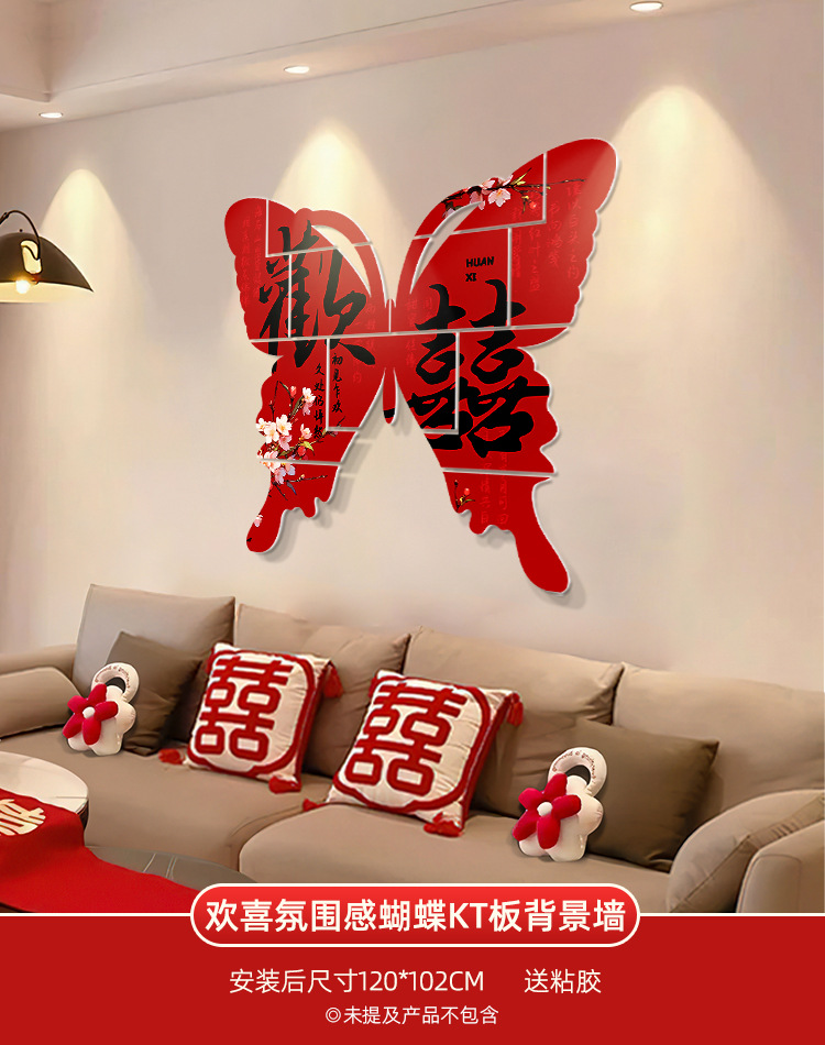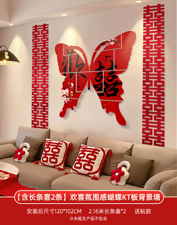 • [긴 스트립 2개 포함] 행복한 분위기의 나비 KT 보드 배경 벽 120CM
