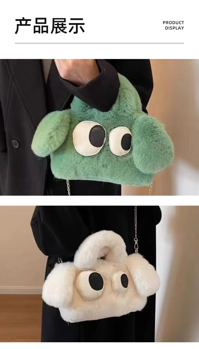 귀여운 봉제 큰 눈 강아지 모피 핸드백 소녀 학생 인기 만화 창조적 인 소녀 크로스 바디 가방스토어 가기