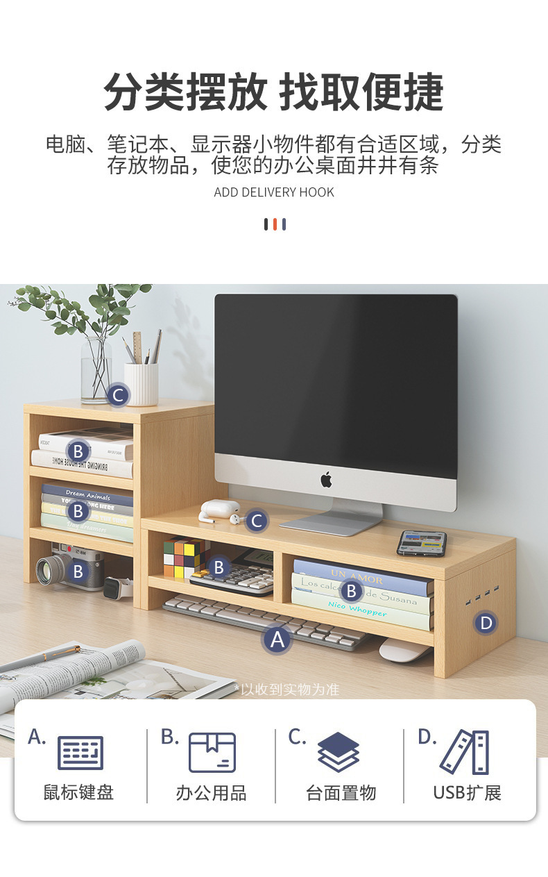 데스크탑 컴퓨터 높이 조절 스탠드 모니터 스크린 높이 조절 받침대 사무실 책상 정리대 노트북 거치대스토어 가기