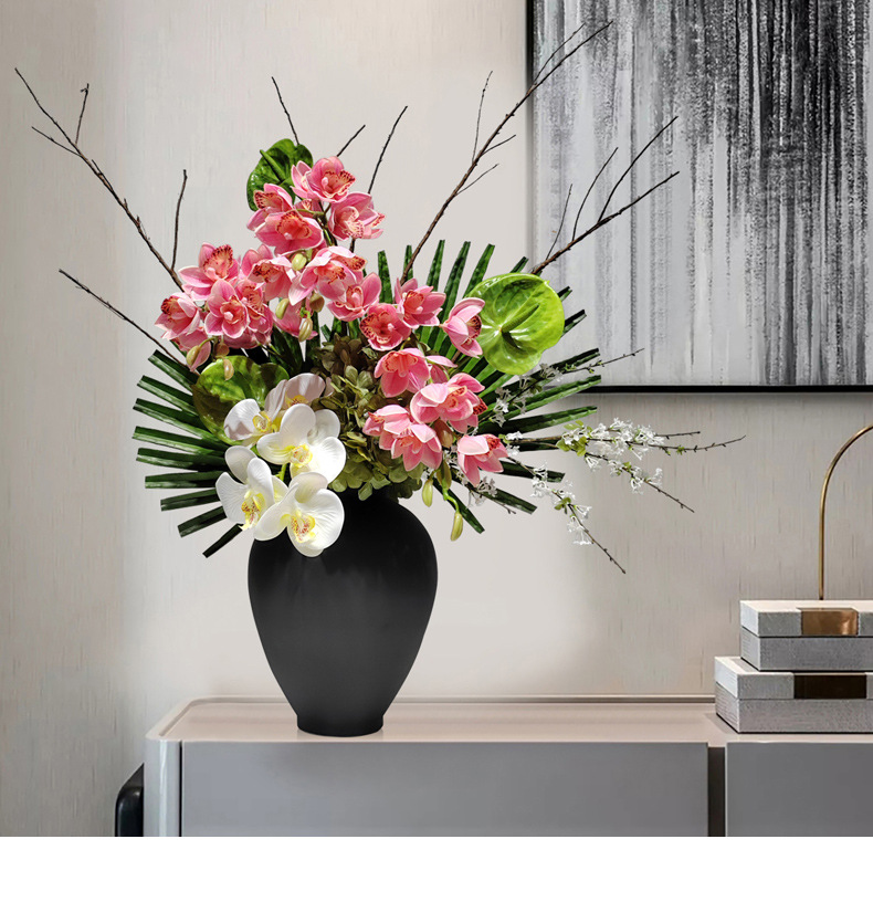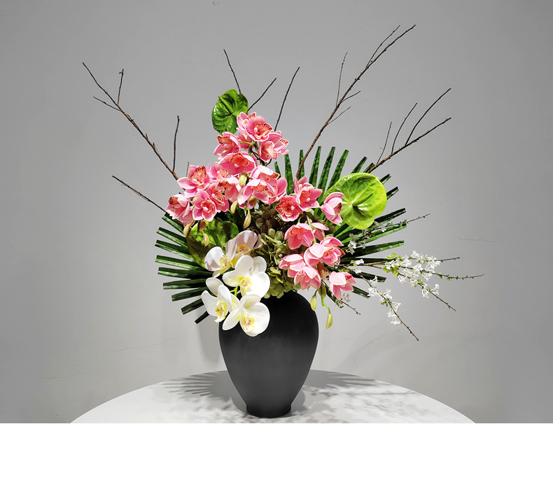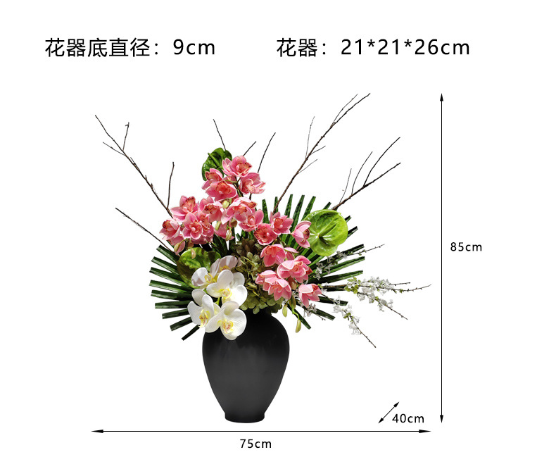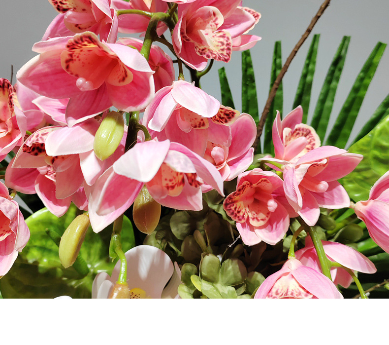 새로운 중국 핑크 인공 꽃 호접란 영원한 꽃 녹색 식물 분재 수제 꽃 배열 프론트 오피스 장식스토어 가기