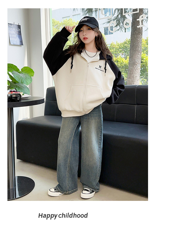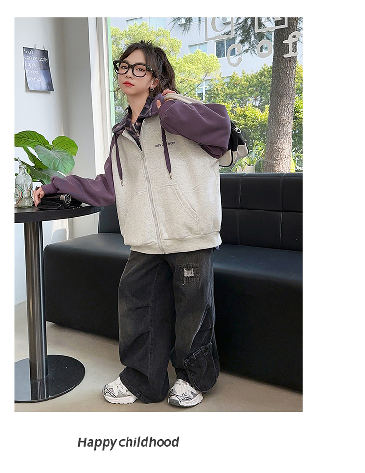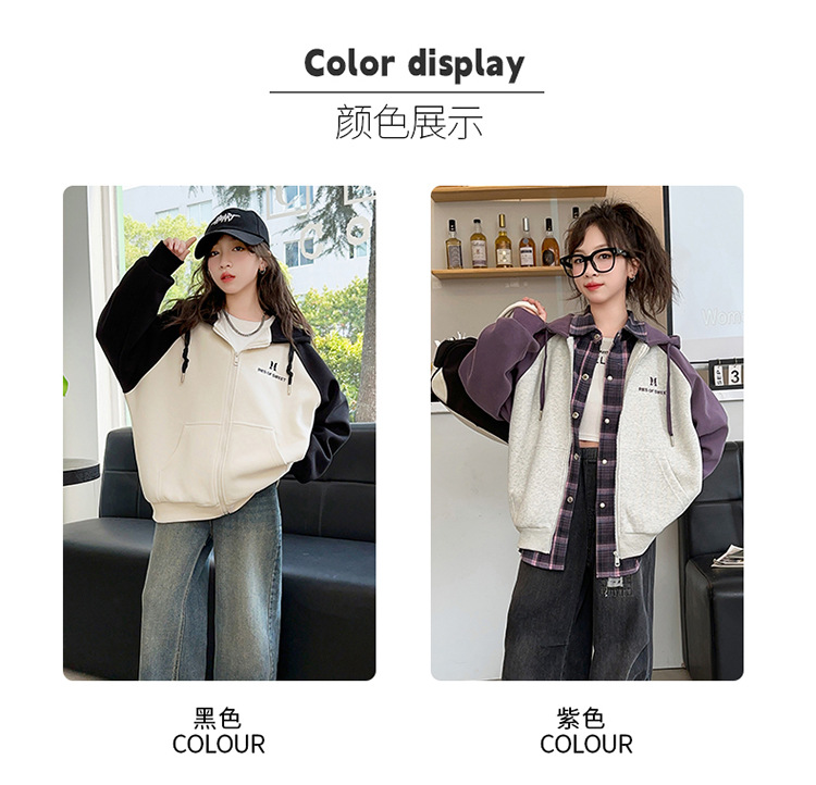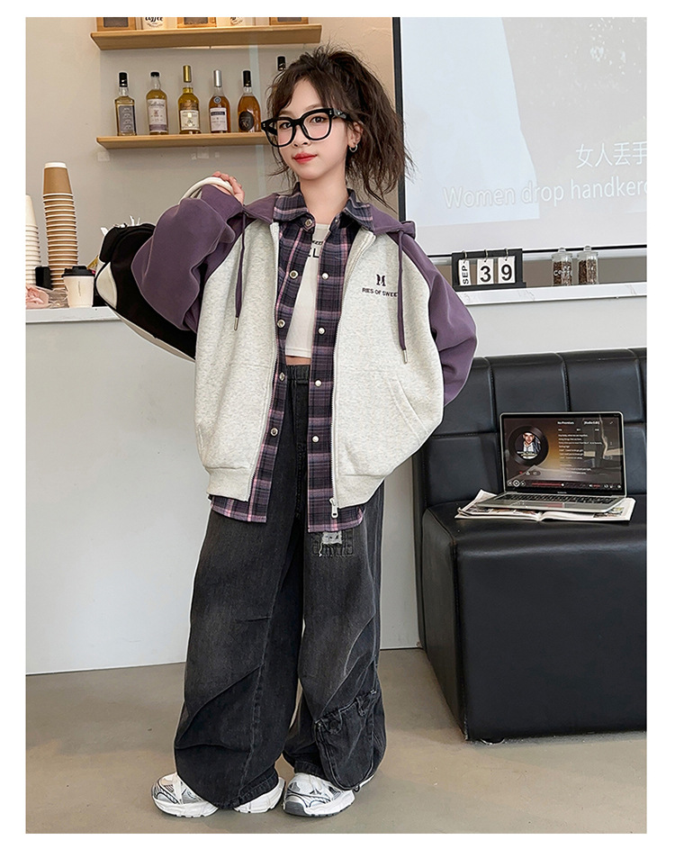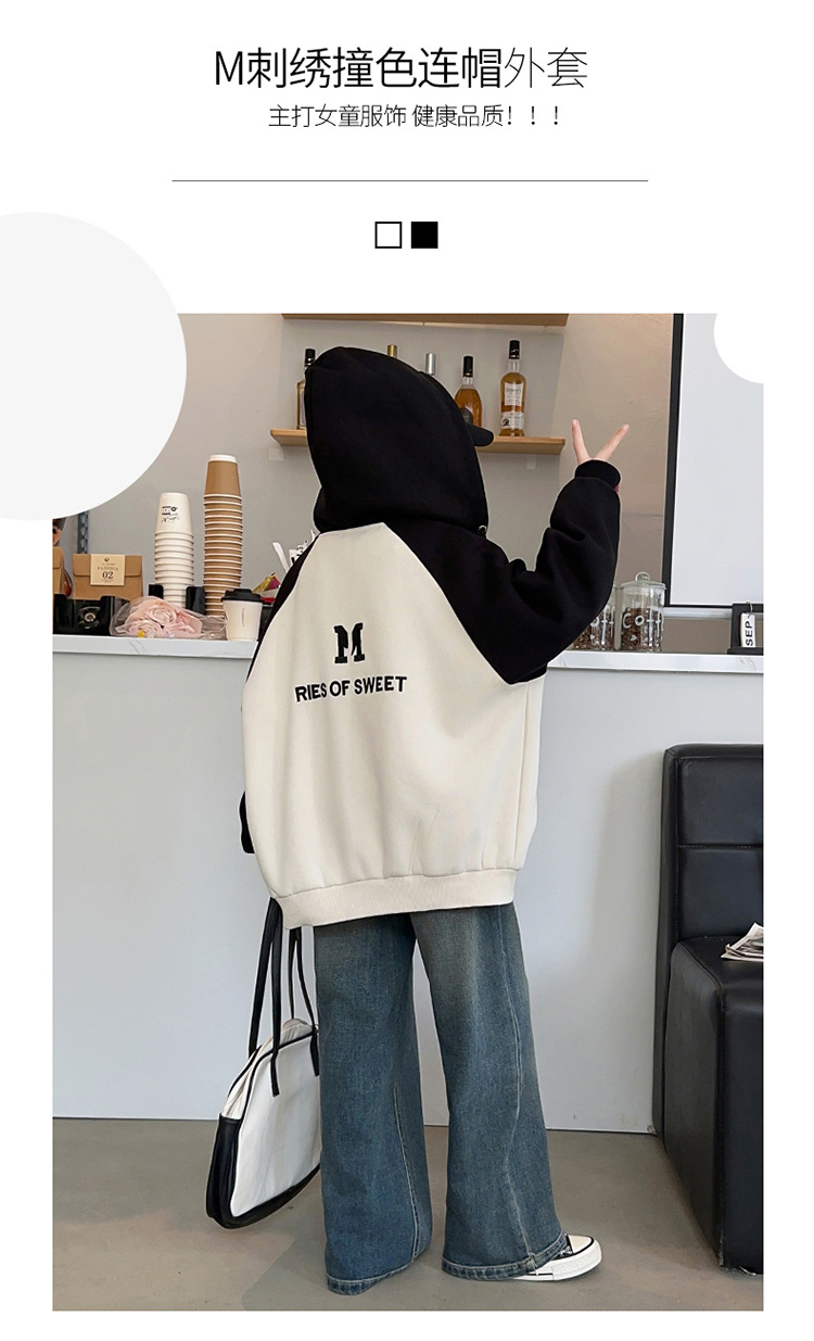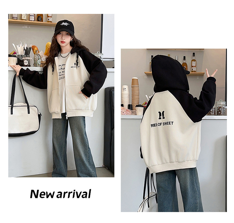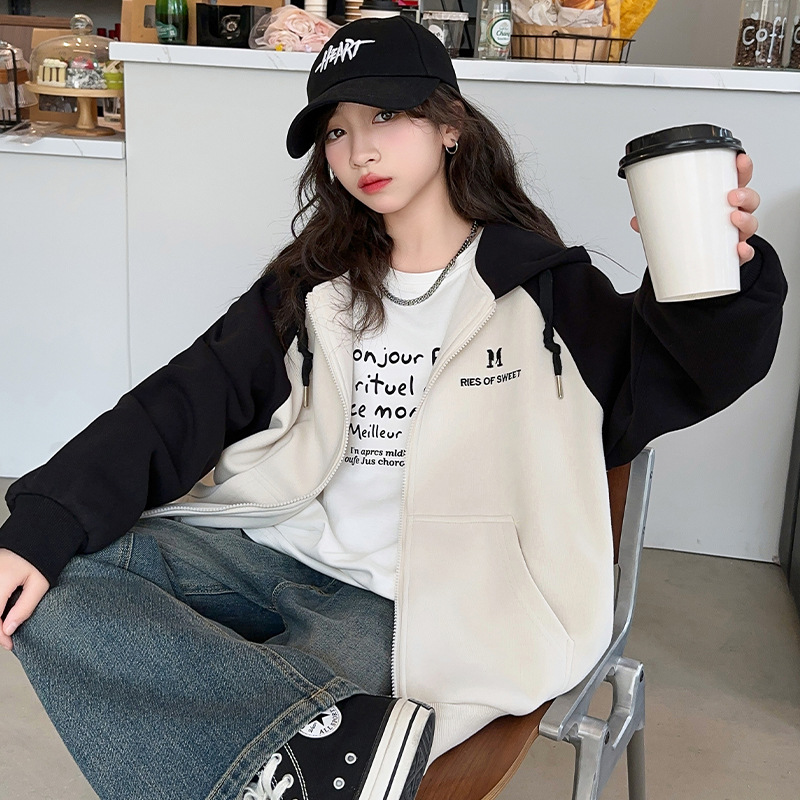 크로스보더 여아 한국 스타일 래글런 가디건 상의 2026년 큰아동용 봄가을 신상 스타일리쉬 레터링 배색 후드 자켓스토어 가기