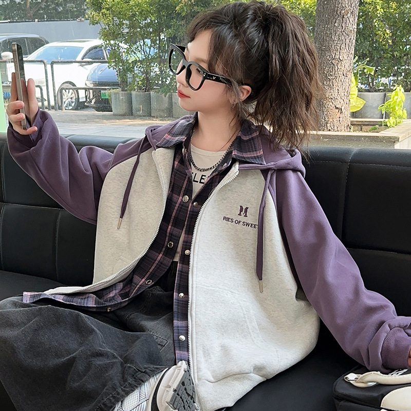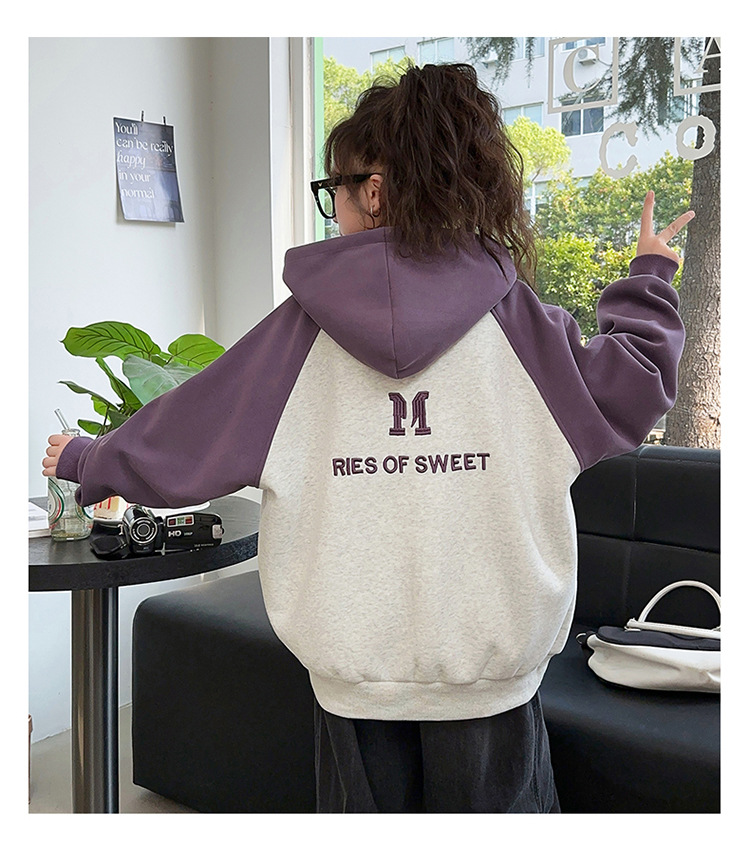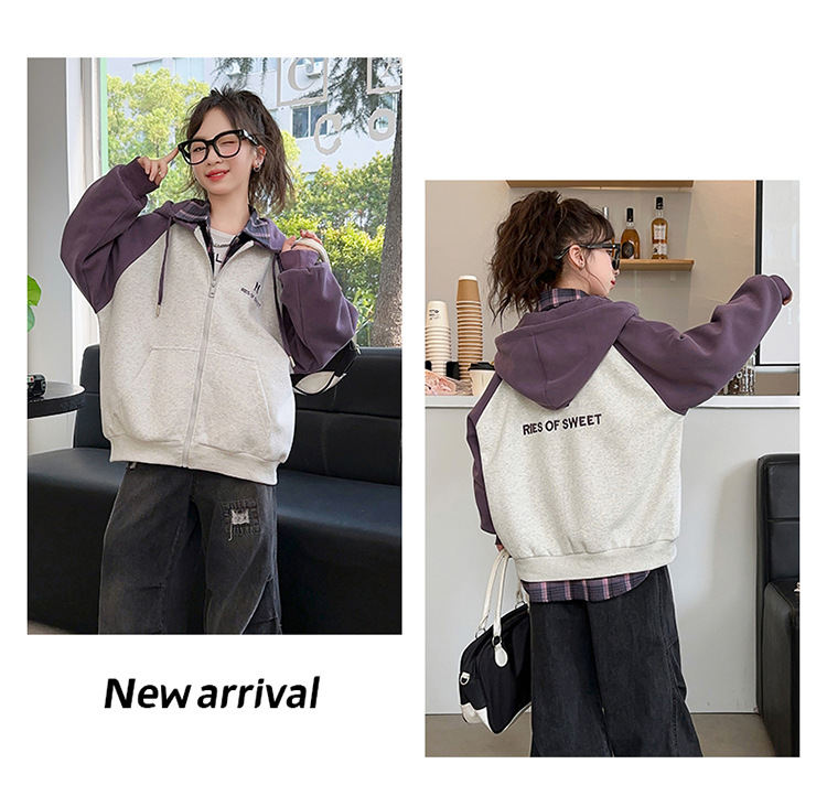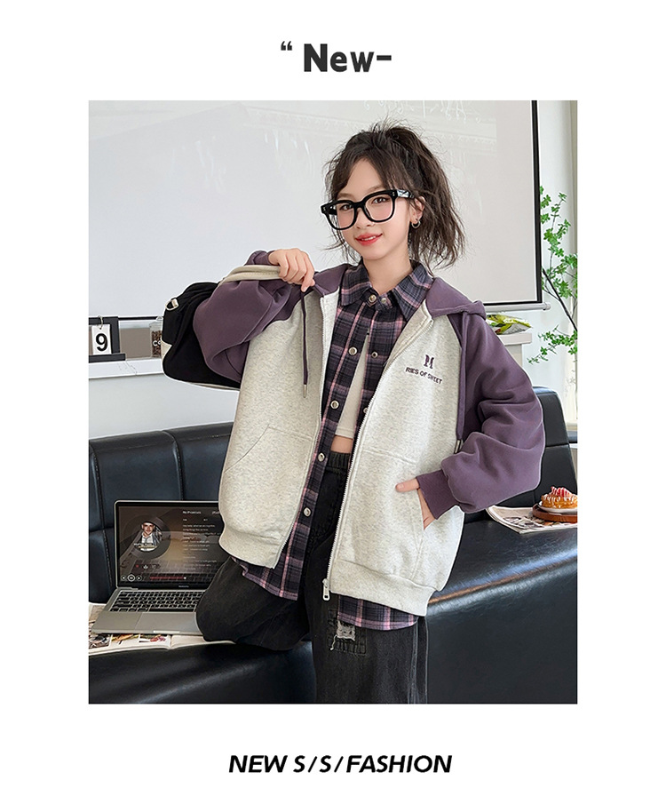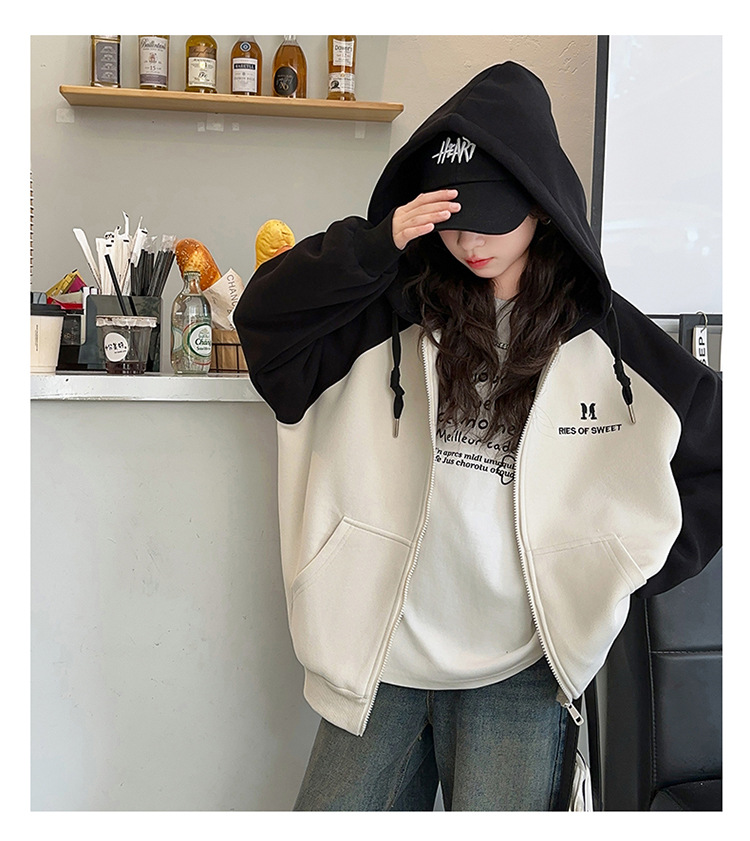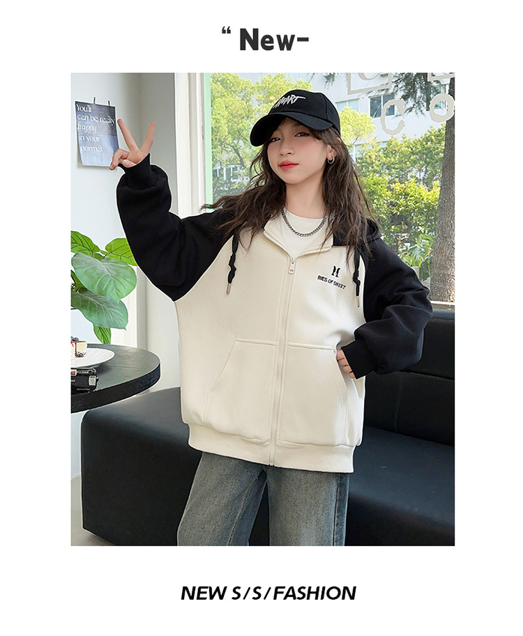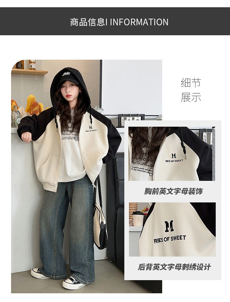 크로스보더 여아 한국 스타일 래글런 가디건 상의 2026년 큰아동용 봄가을 신상 스타일리쉬 레터링 배색 후드 자켓스토어 가기