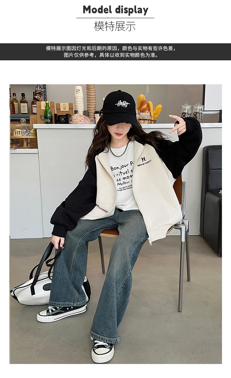 크로스보더 여아 한국 스타일 래글런 가디건 상의 2026년 큰아동용 봄가을 신상 스타일리쉬 레터링 배색 후드 자켓