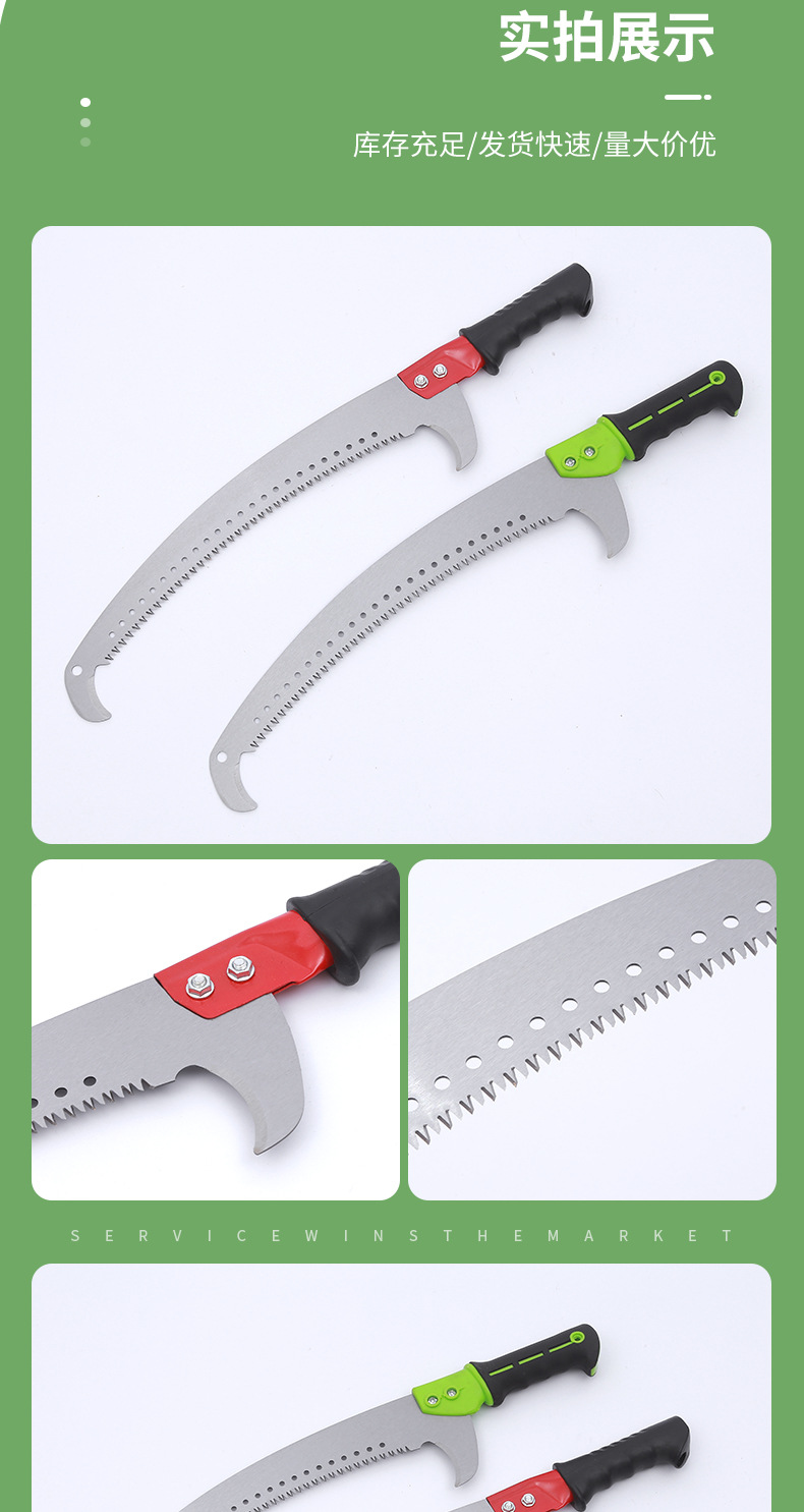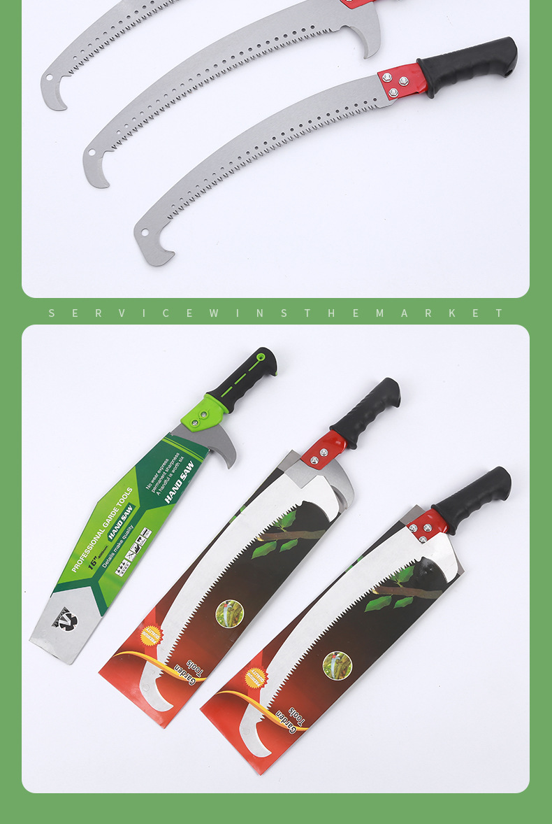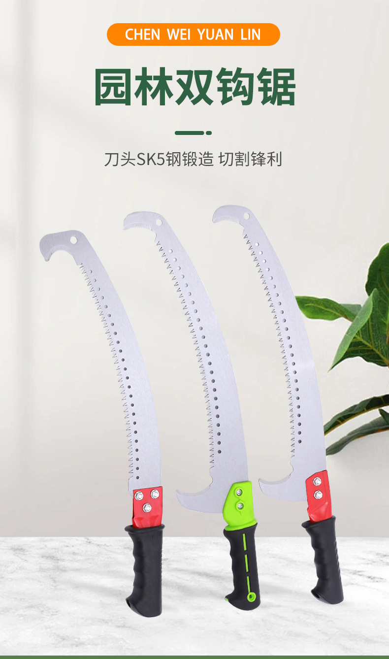 정원 과일 나무 가지 치기는 정원 후크를 사용하여 연삭 치아 후크를 보았습니다. 강철 목공 손으로 높은 분기 더블 후크 곡선 톱을 보았습니다.