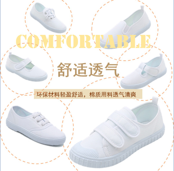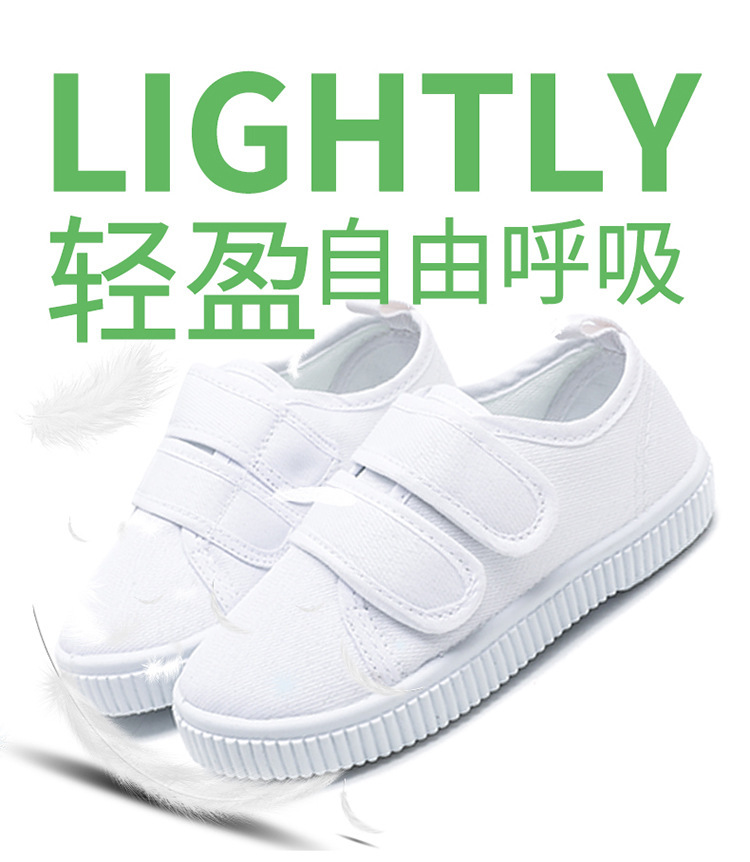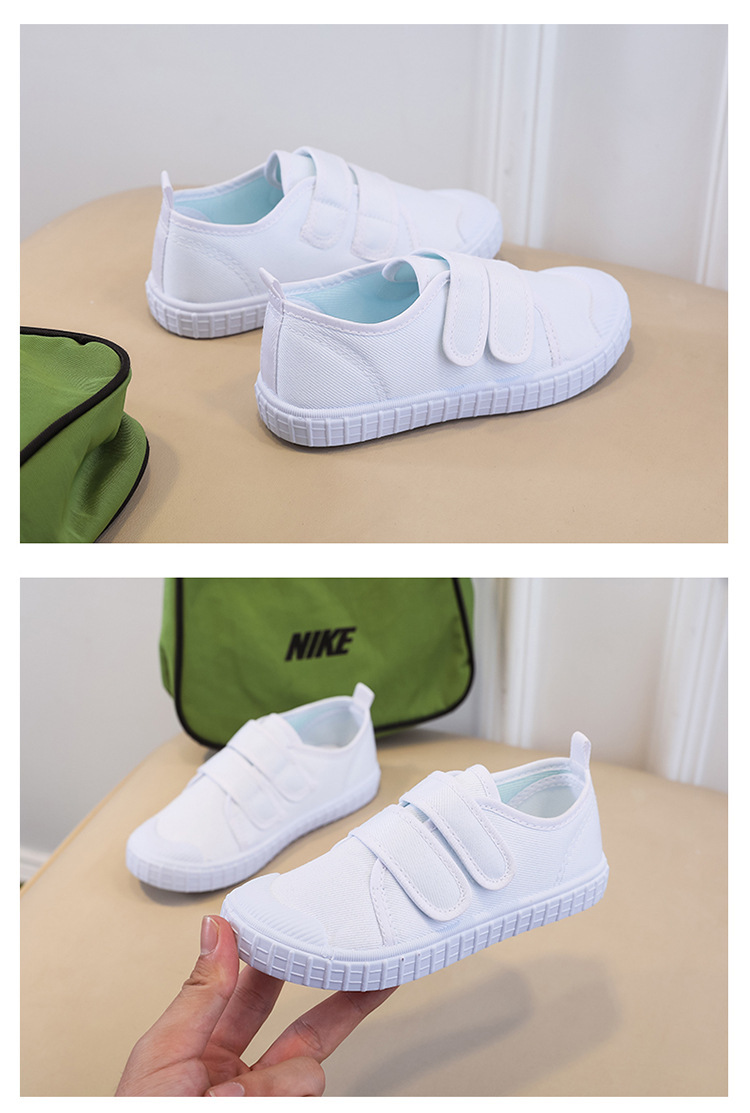어린이 신발 어린이 흰색 신발 댄스 신발 소년 소녀 벨크로 흰색 천 신발 학생을위한 유치원 실내 신발스토어 가기