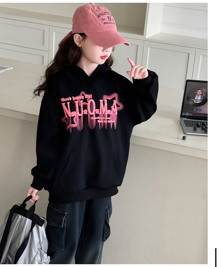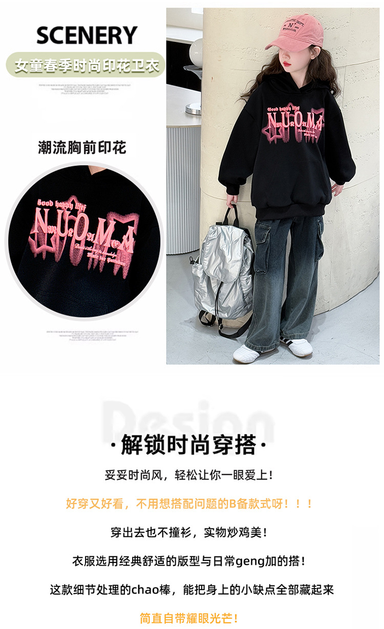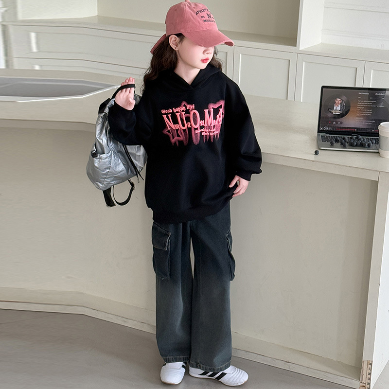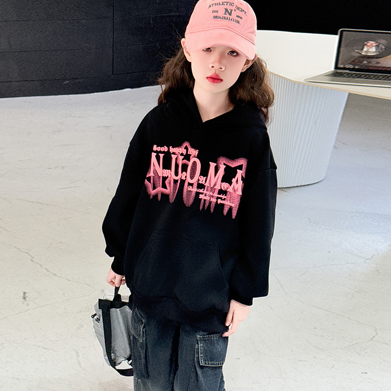 소녀의 봄 2025 새로운 스타일 한국 스타일 유행 어린이 옷 모든 경기 캐주얼 후드 땀 소녀의 유행
