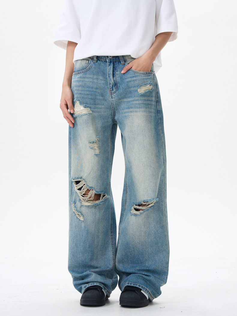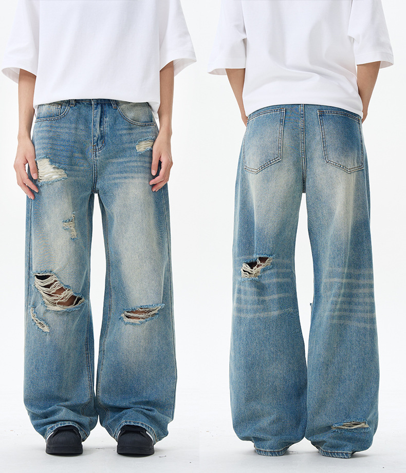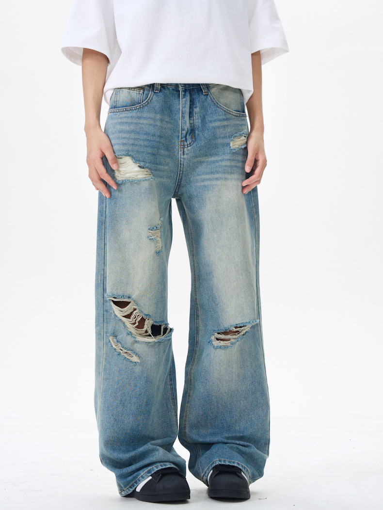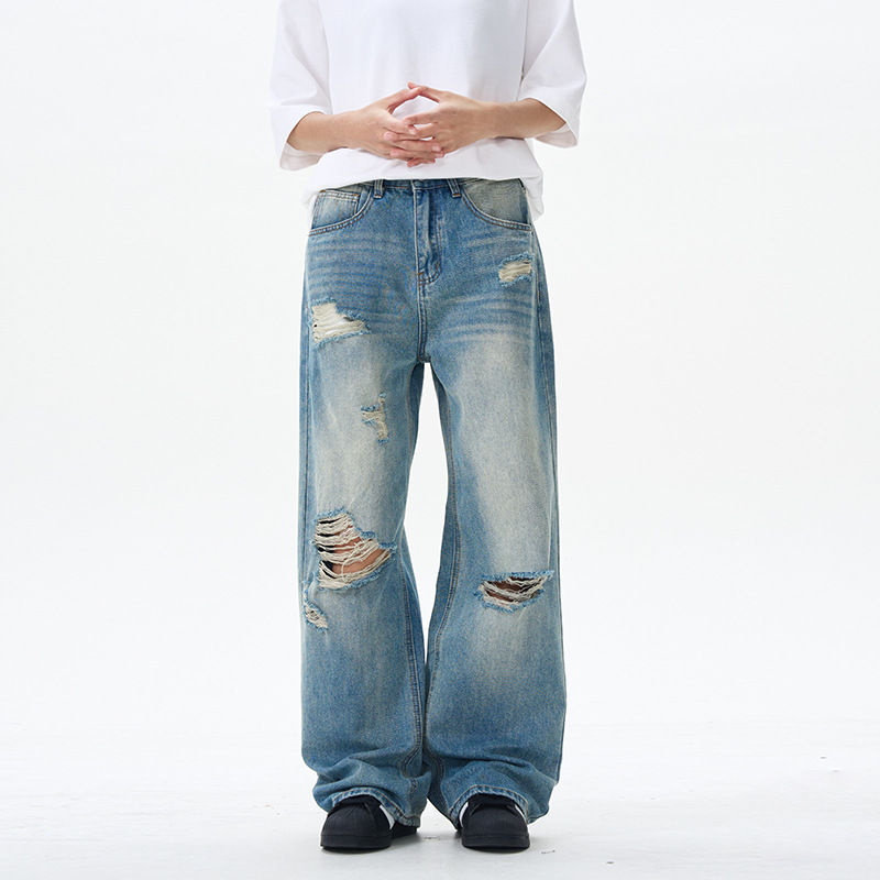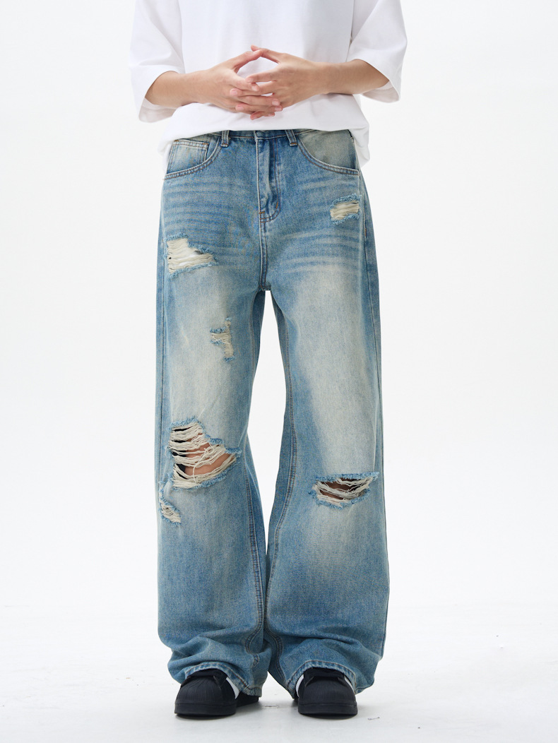 패션 스트리트 트렌디 리핑 청바지 남성 청바지 # 고급 청소년 미국 스트레이트 바지스토어 가기