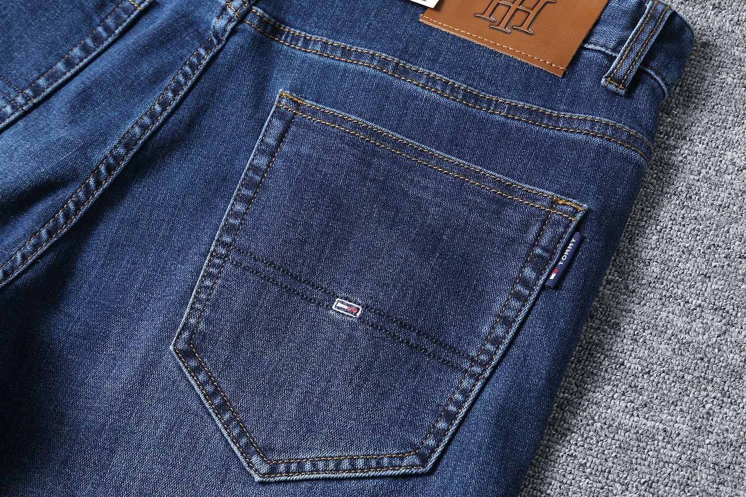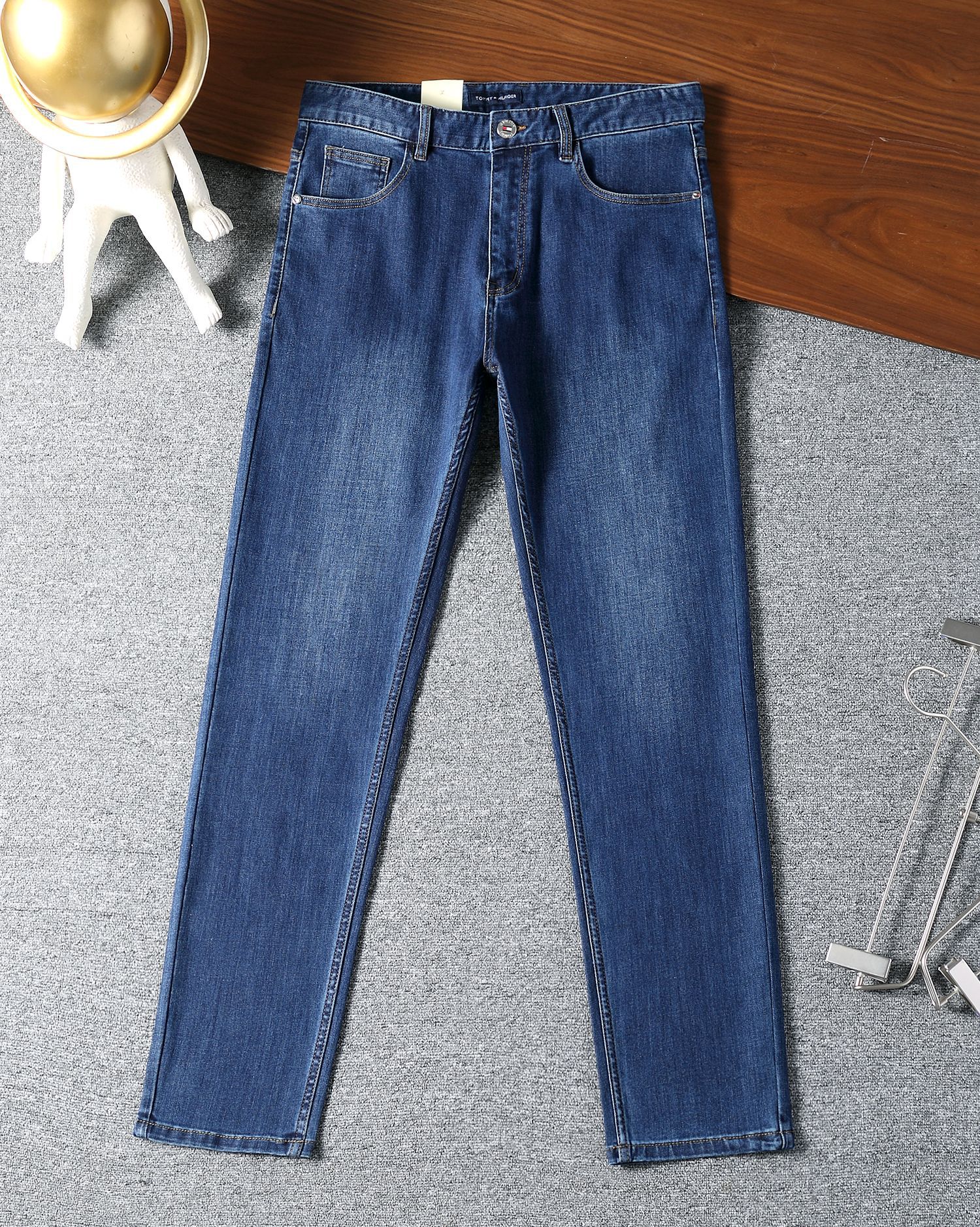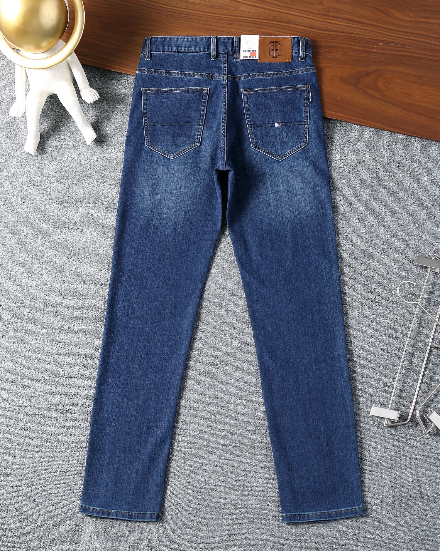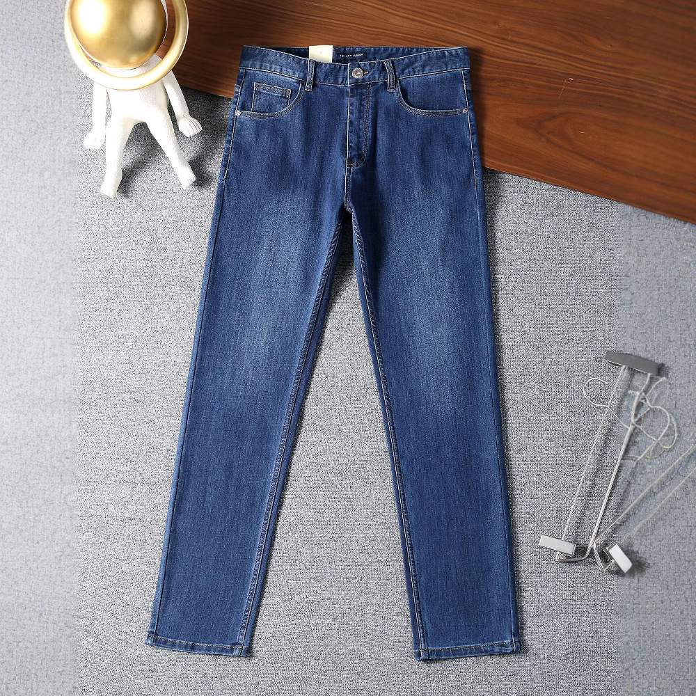 유럽 스타일 가을 겨울 신상 고급 브랜드 남성 슬림핏 스트레이트 데님 팬츠 신축성 있는 라이트 럭셔리 남성복 바지 다용도스토어 가기