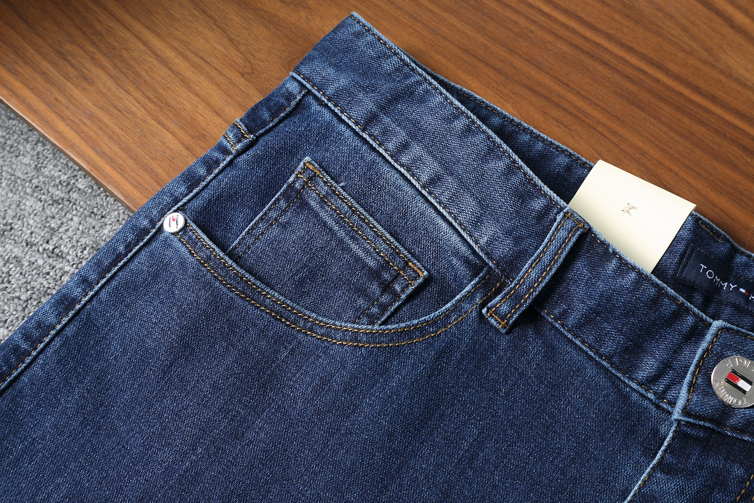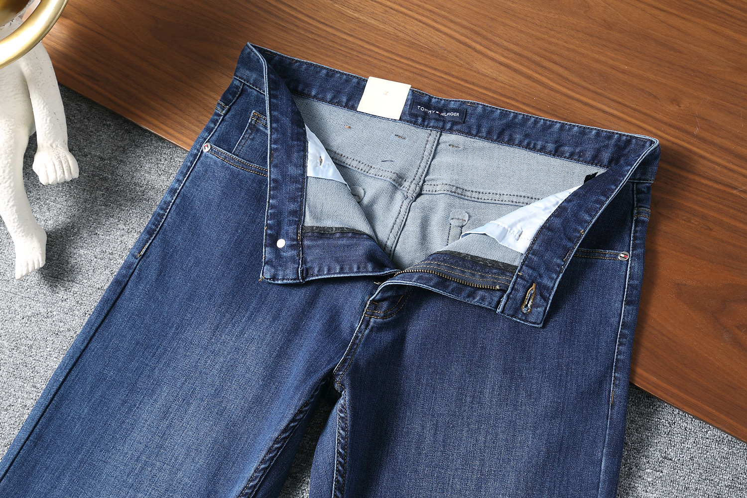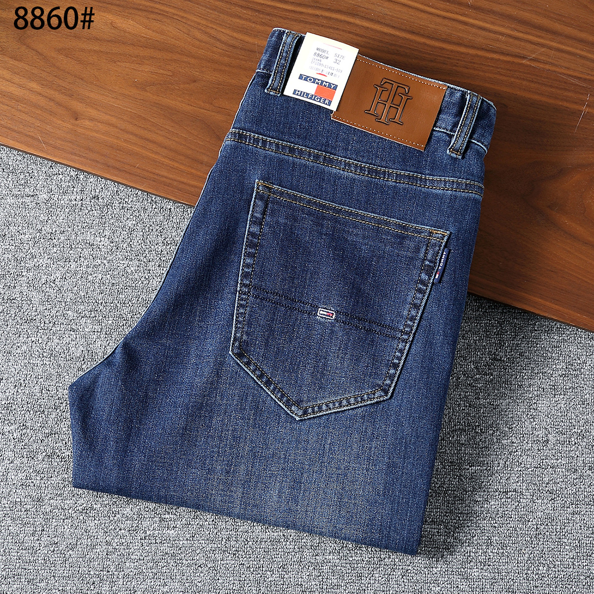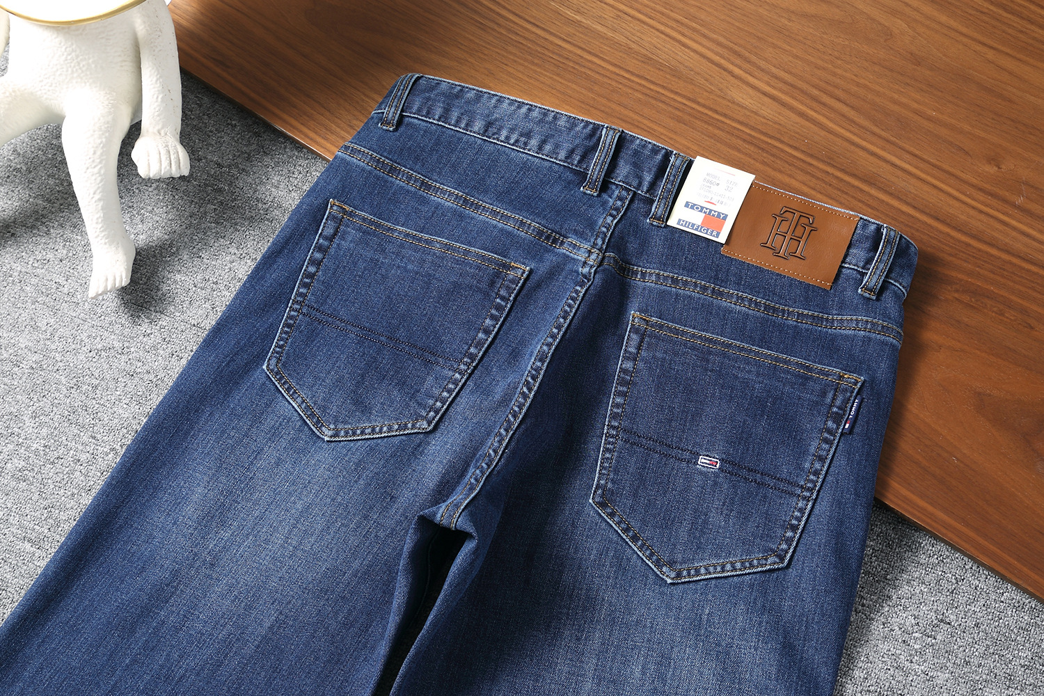 유럽 스타일 가을 겨울 신상 고급 브랜드 남성 슬림핏 스트레이트 데님 팬츠 신축성 있는 라이트 럭셔리 남성복 바지 다용도스토어 가기