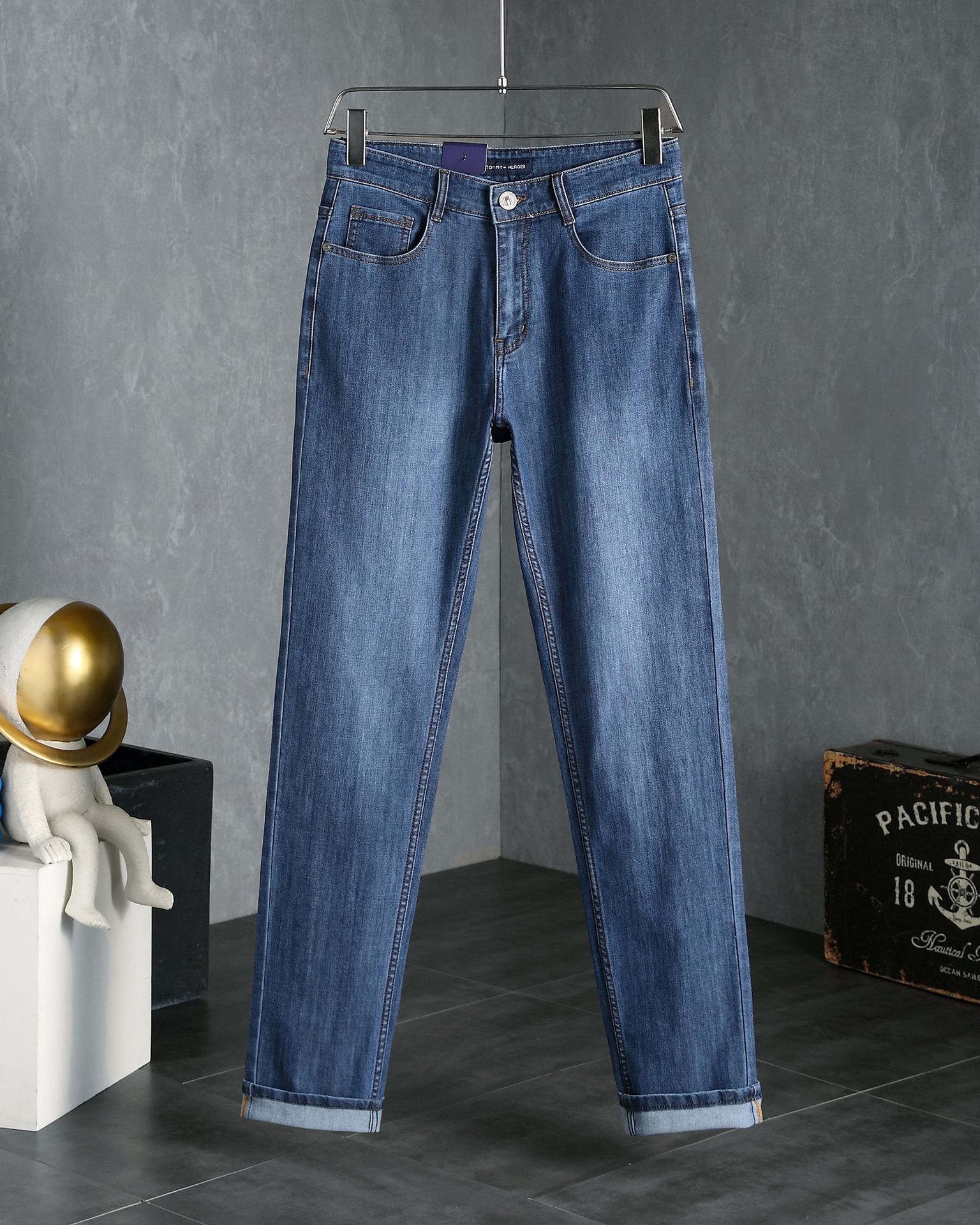 유럽 스타일 봄 여름 신상 남성 슬림핏 스트레이트 스트레치 고급 남성용 긴바지 다용도 슬림핏스토어 가기