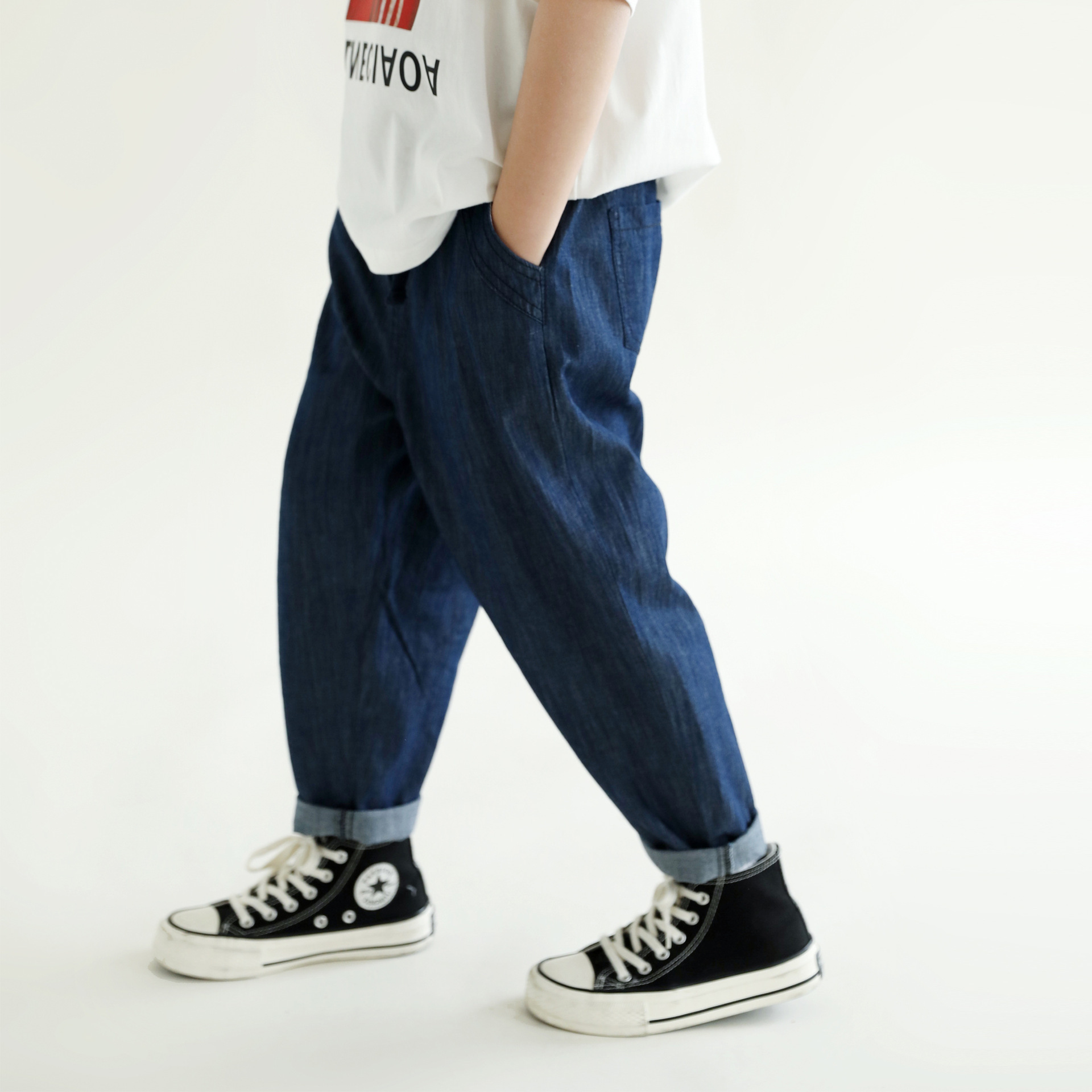 봄과 여름 2025 새로운 스타일 중대형 어린이 소년 얇은 통기성 텐셀 청바지 어린이의 부드럽고 편안한 안티 모기 트렌디 바지스토어 가기