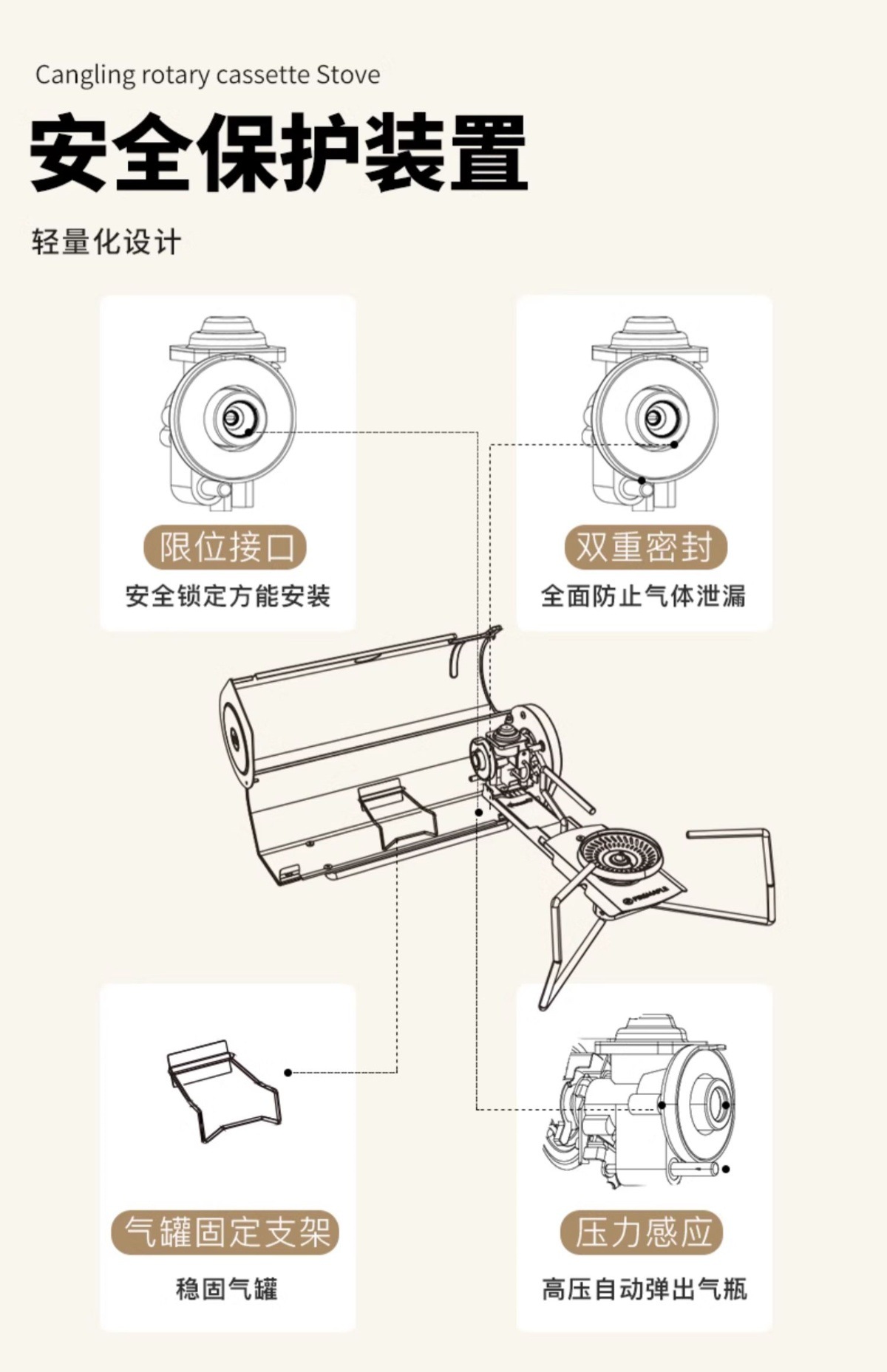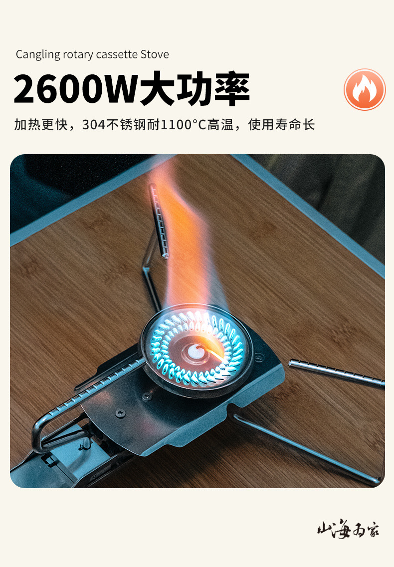 Huofeng Cangling 로타리 카드로 가스 탱크 가스로 2600W 야외 휴대용 스토브 필드 캠핑 장비