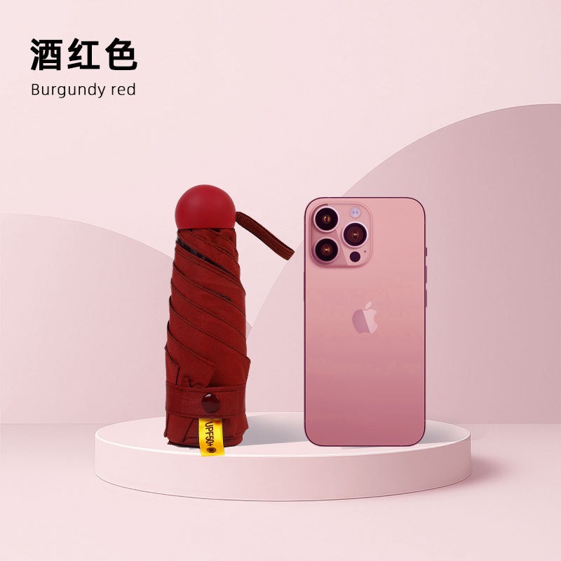 • Feilian 정통 제품-편평한 50% off 포켓 우산-버건디
