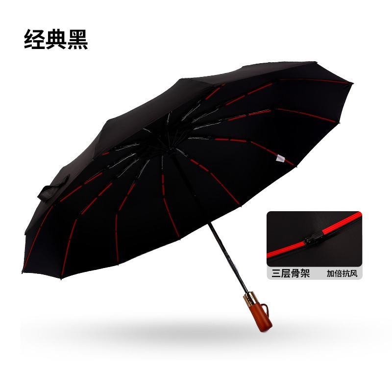 • Feilian 정통 라운드 50% off 포켓 우산-블랙