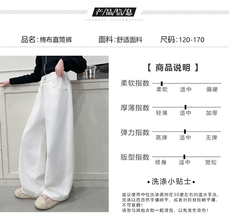 소녀 바지 봄과 가을 중대 어린이 서양식 코튼 하이 허리 스트레이트 바지 소녀 인터넷-유명한 프라이드 스트리트 루즈 와이드 레그 바지