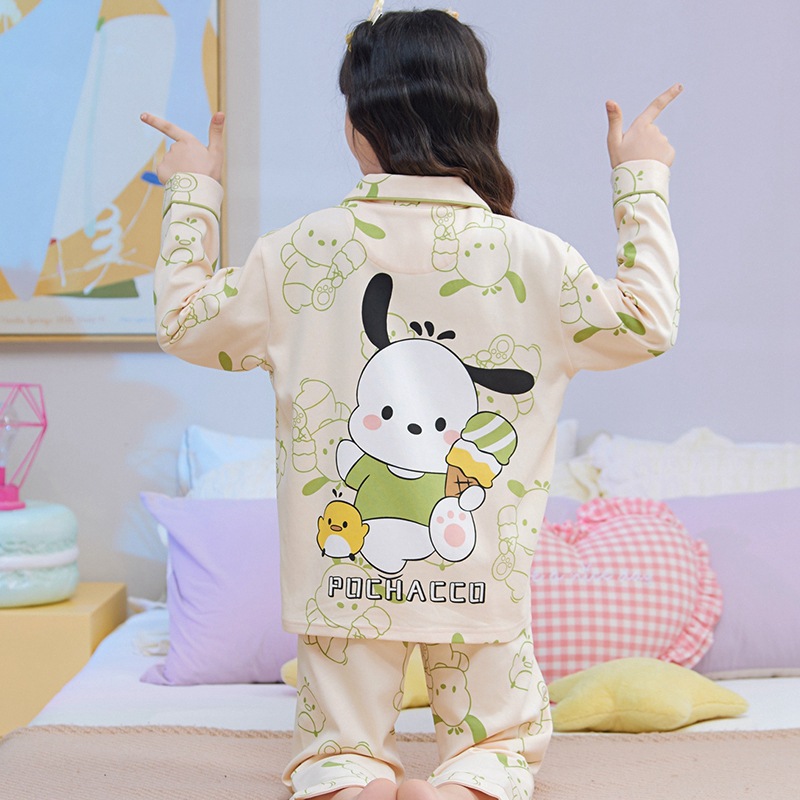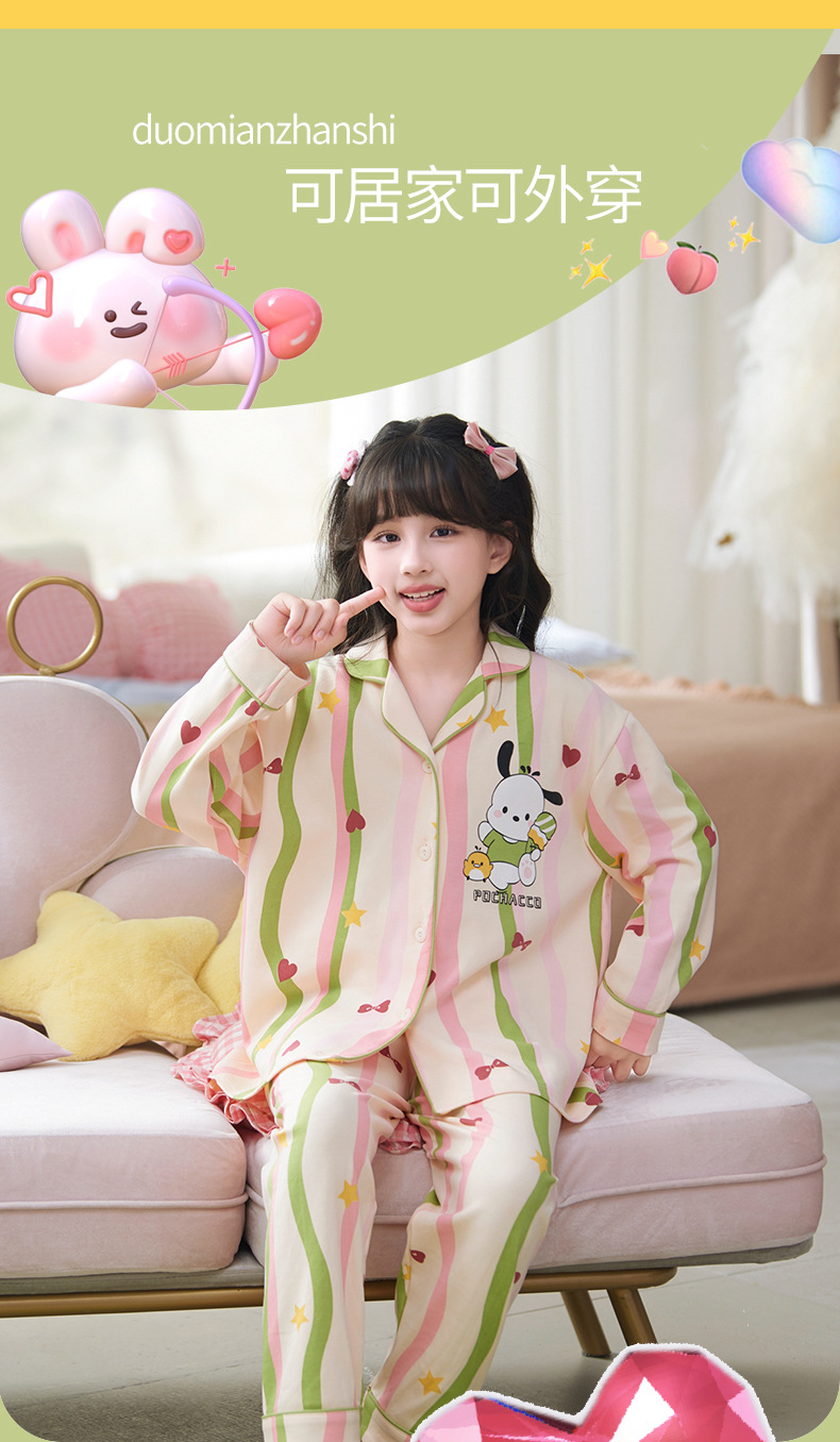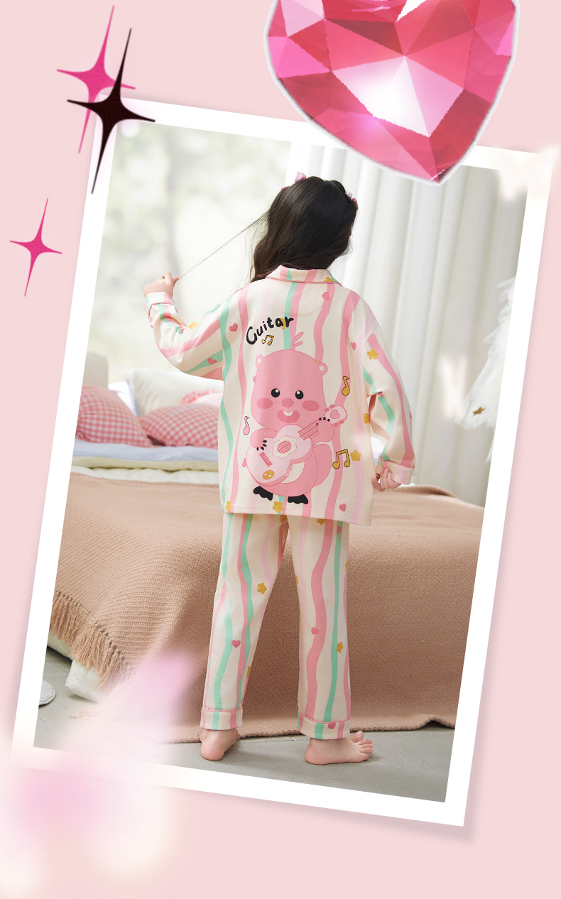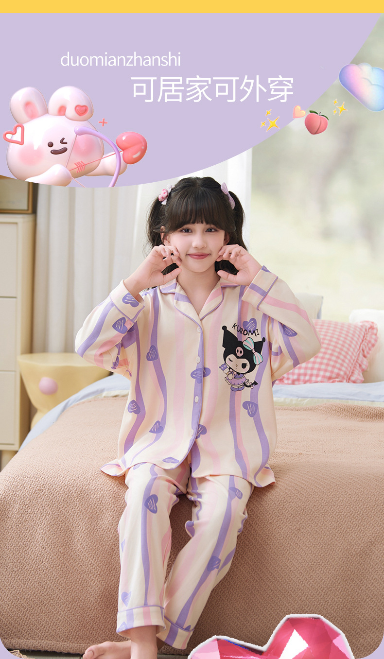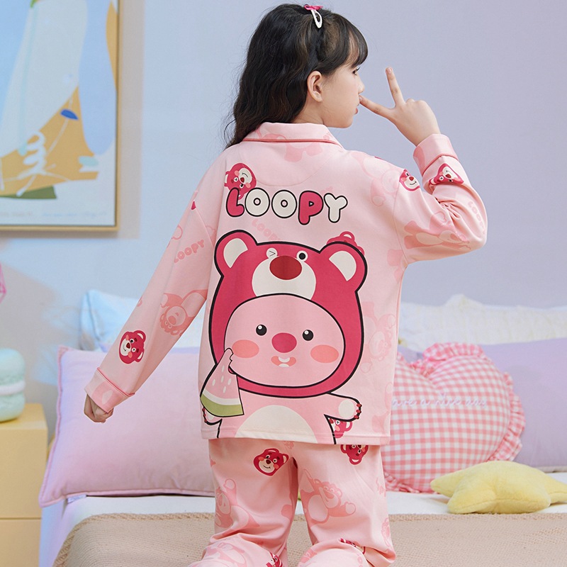 2025 새로운 소녀 잠옷 봄과 가을면 얇은 긴 소매 어린이 소녀 만화 귀여운 홈 옷 세트