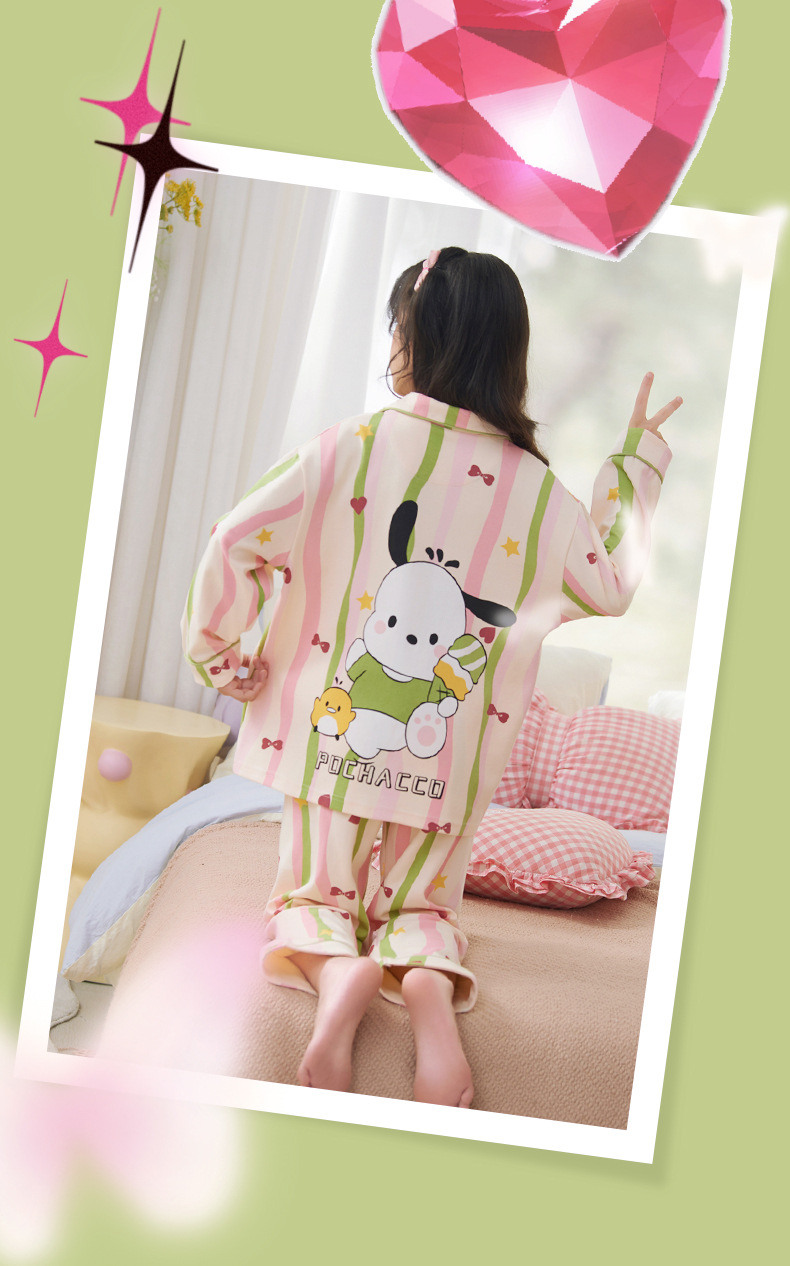 2025 새로운 소녀 잠옷 봄과 가을면 얇은 긴 소매 어린이 소녀 만화 귀여운 홈 옷 세트스토어 가기