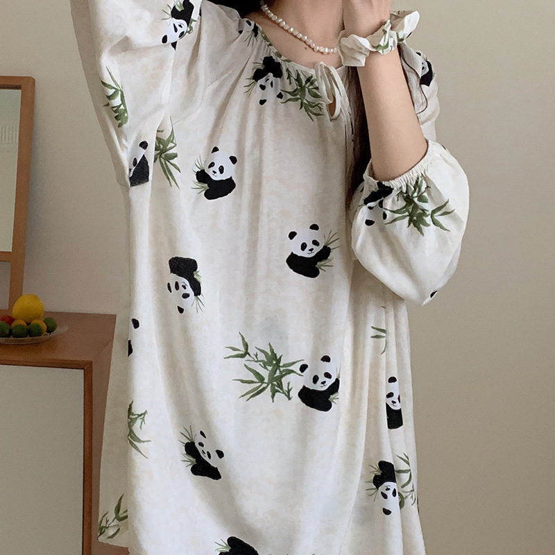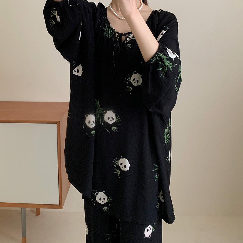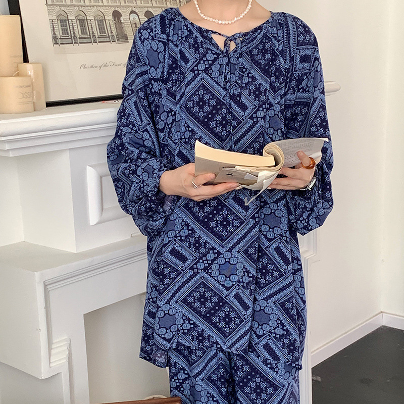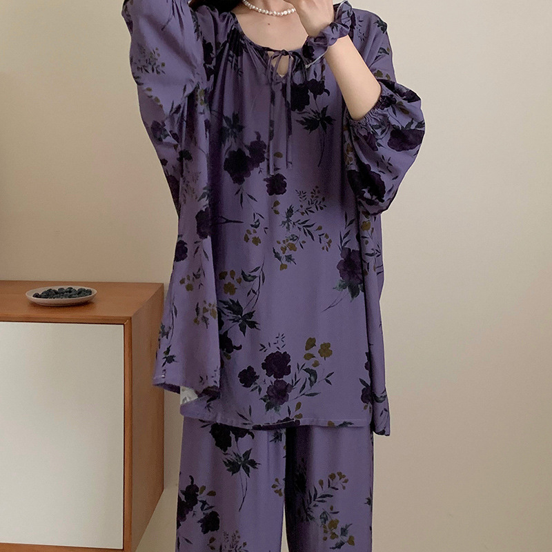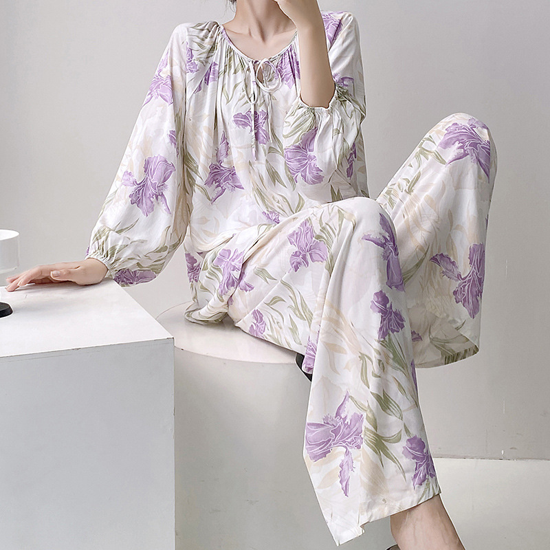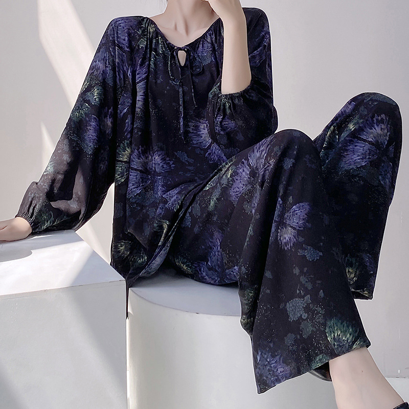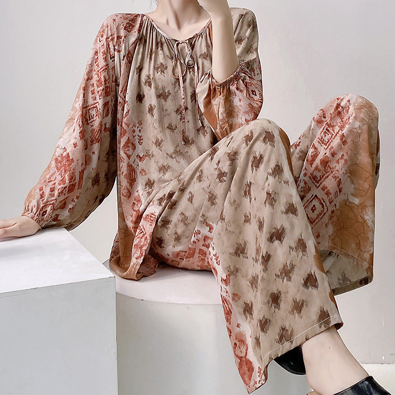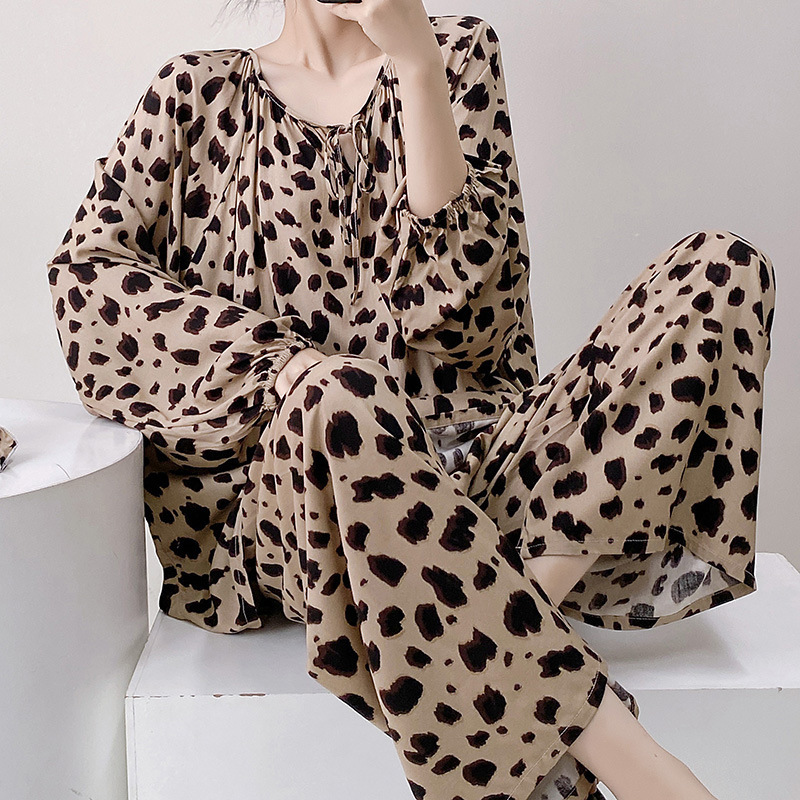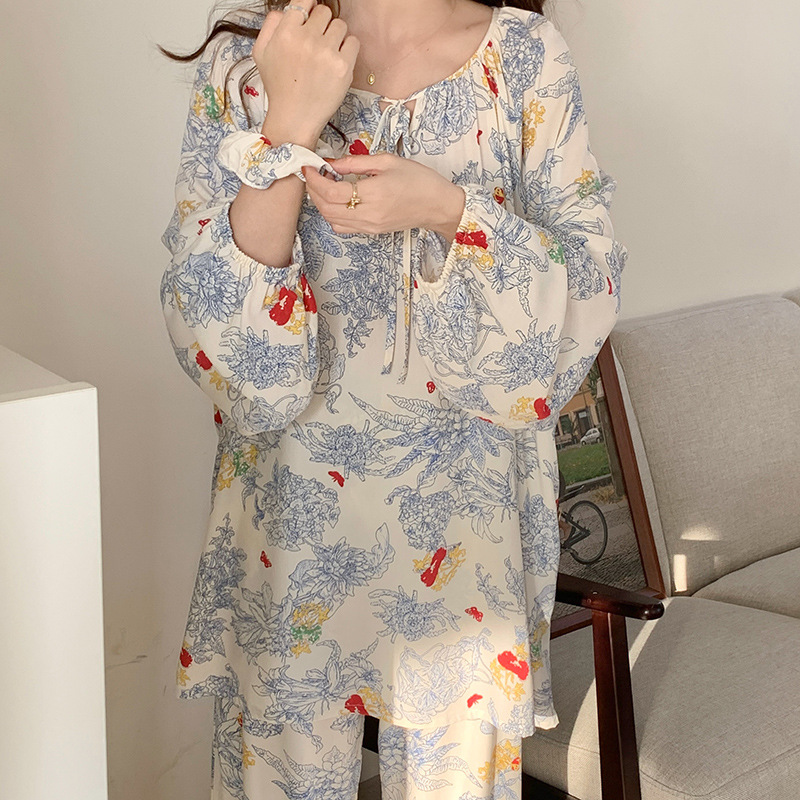 봄과 가을면 실크 잠옷 여성의 여름 얇은 인쇄 바지 느슨한 플러스 사이즈 통통녀 200 진 홈 옷을 입을 수 있습니다스토어 가기