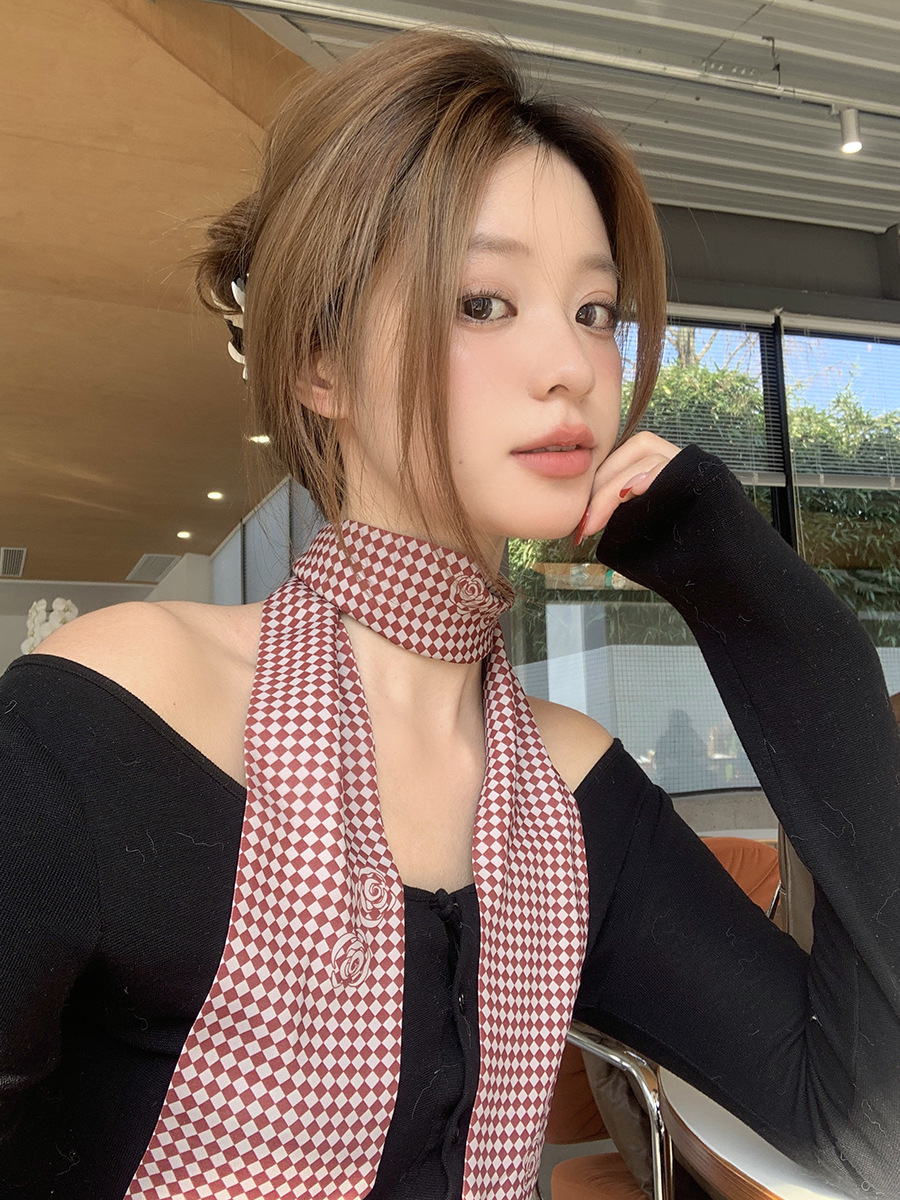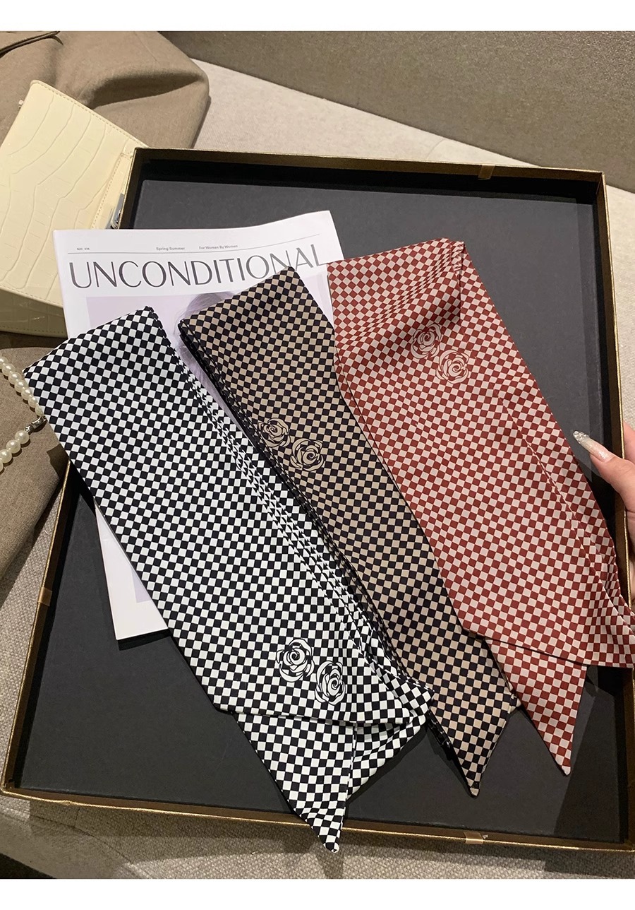 프랑스 스타일 빈티지 격자 무늬 스카프 여성의 2025 봄 새로운 하이 엔드 패션 스카프 헤어 벨트 벨트 정리