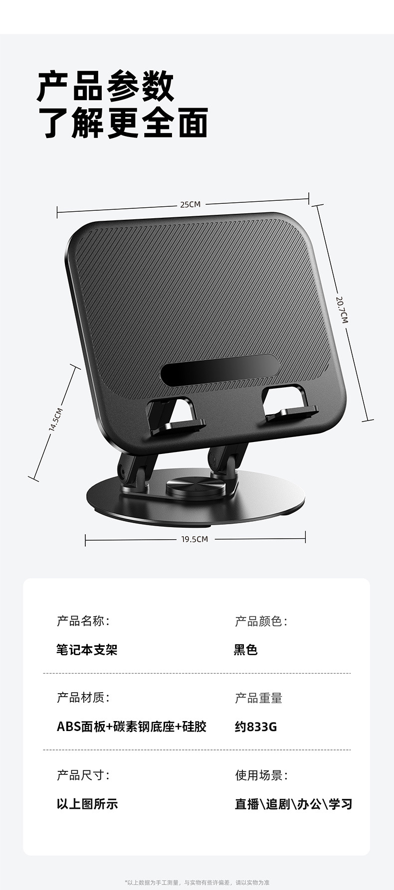 노트북 스탠드 데스크탑 조정 가능한 회전 접는 저장 휴대용 탄소 강철 기초 지원 선반