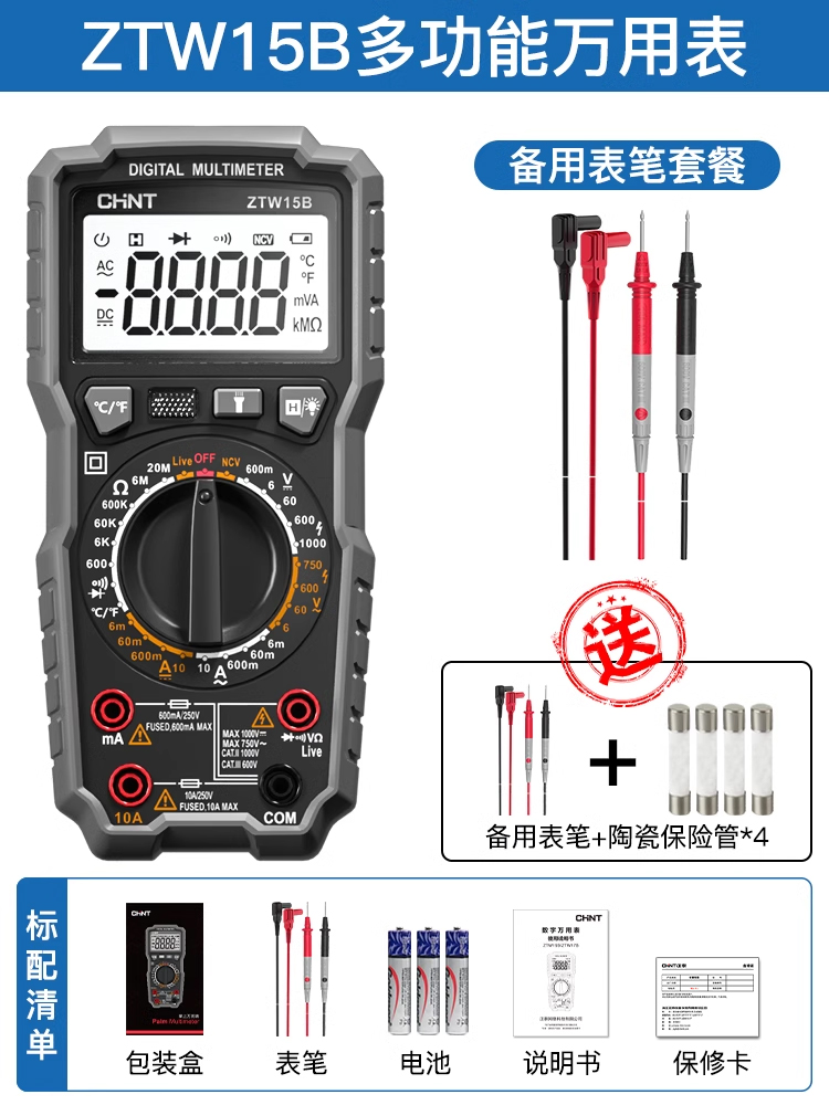 • ZTW15B [전기 모델] 지능형 화상 방지 + 테스트 리드(테스트 리드 + 세라믹 보험 포함)