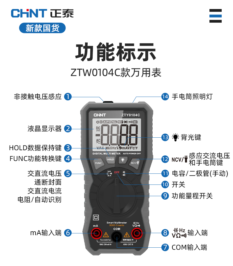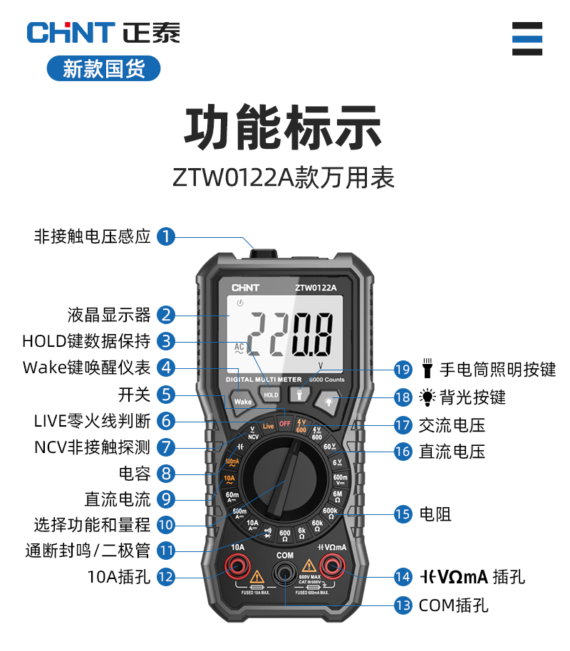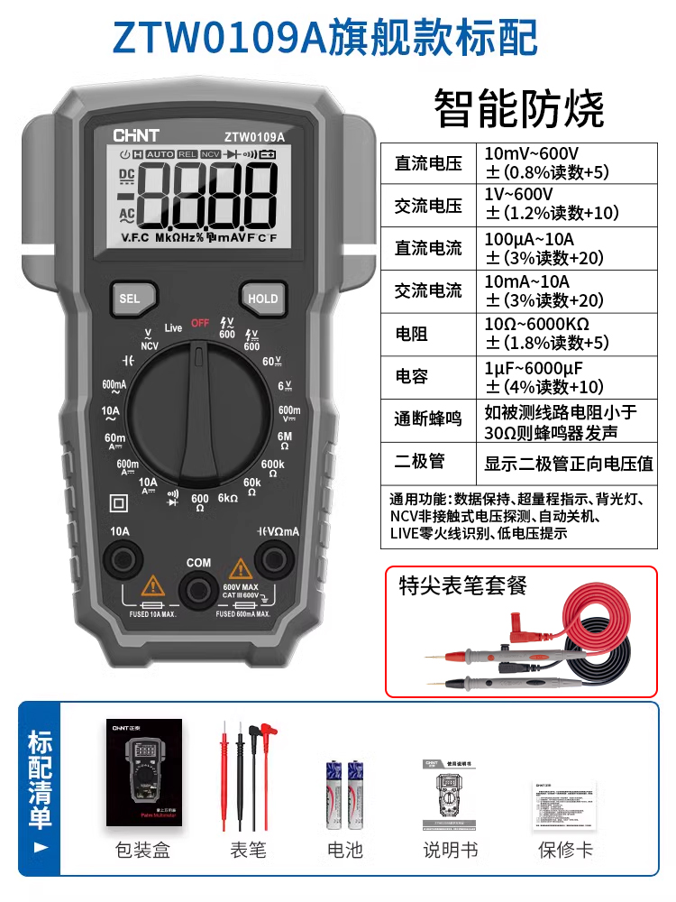 • ZTW0109A [플래그십 모델] 커패시터/지능형 연소 방지/제로 라이브 와이어 + 특수 팁 테스트 리드
