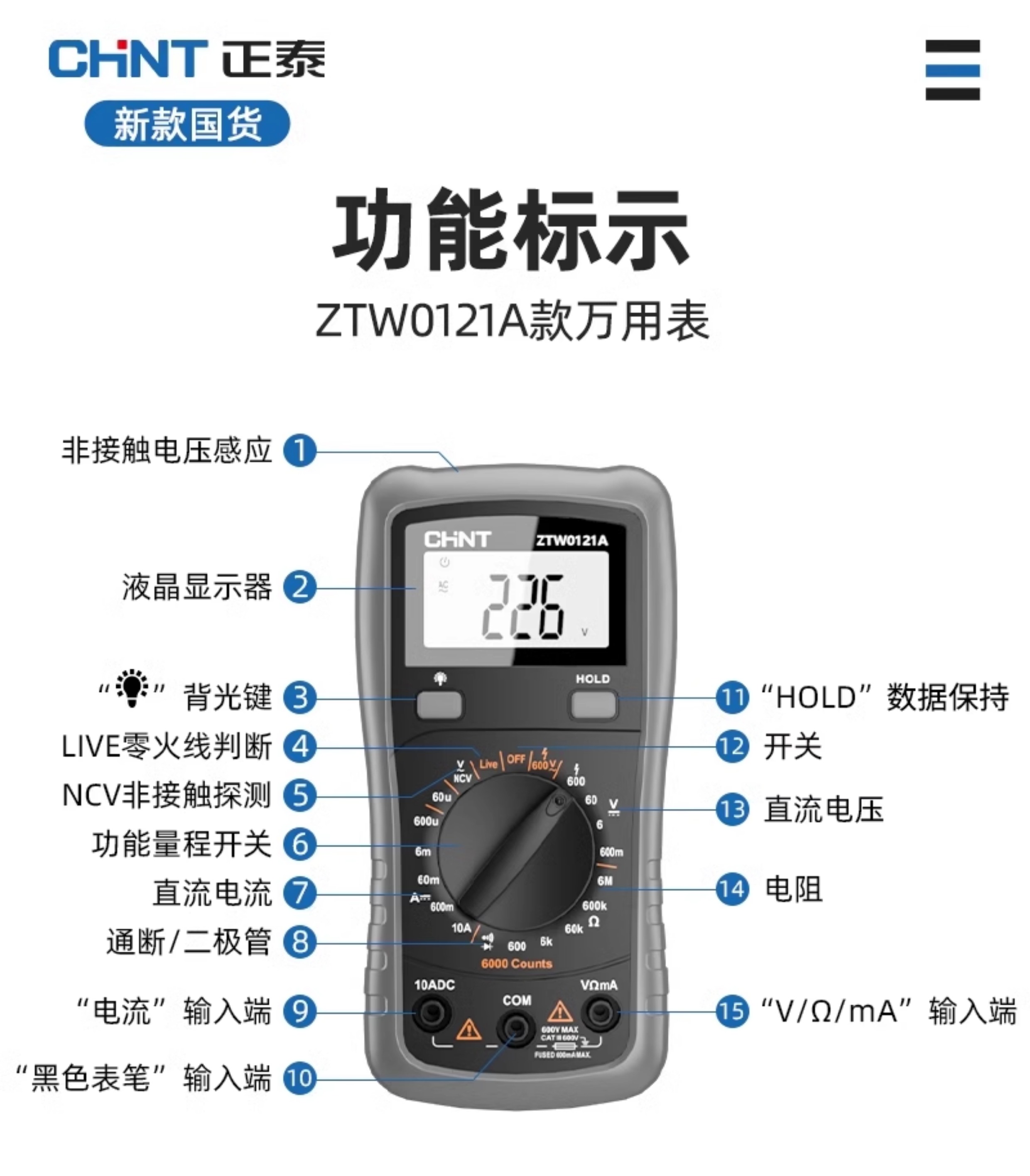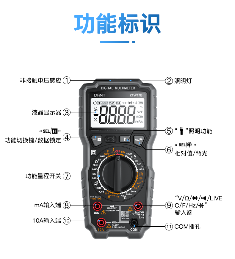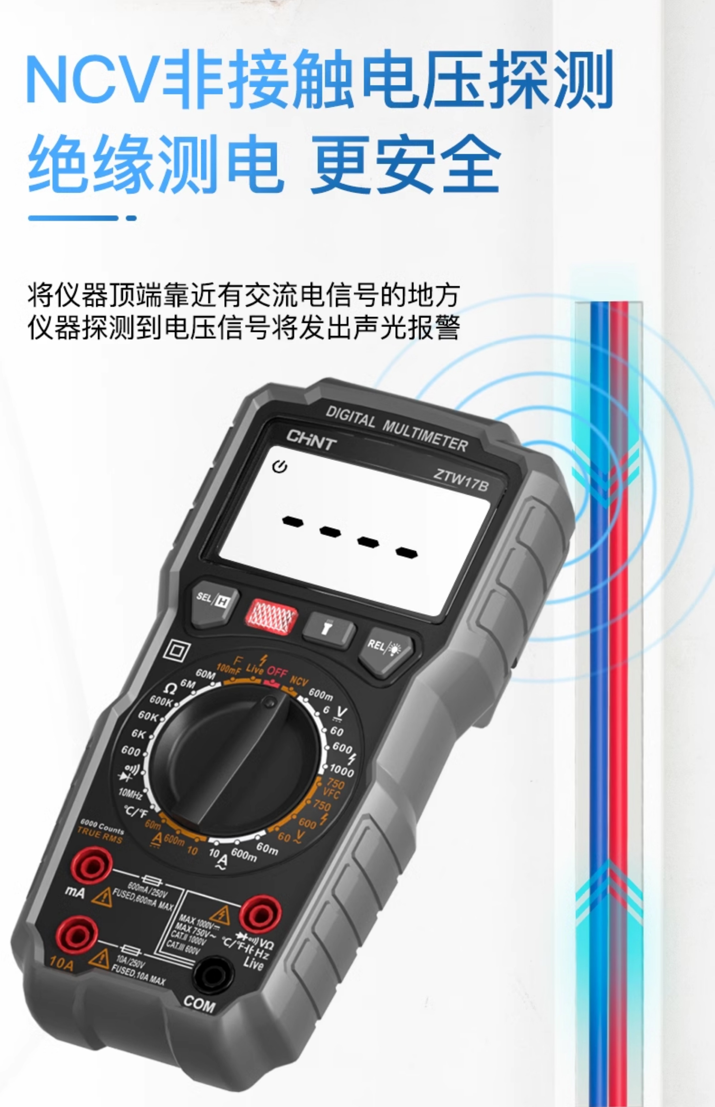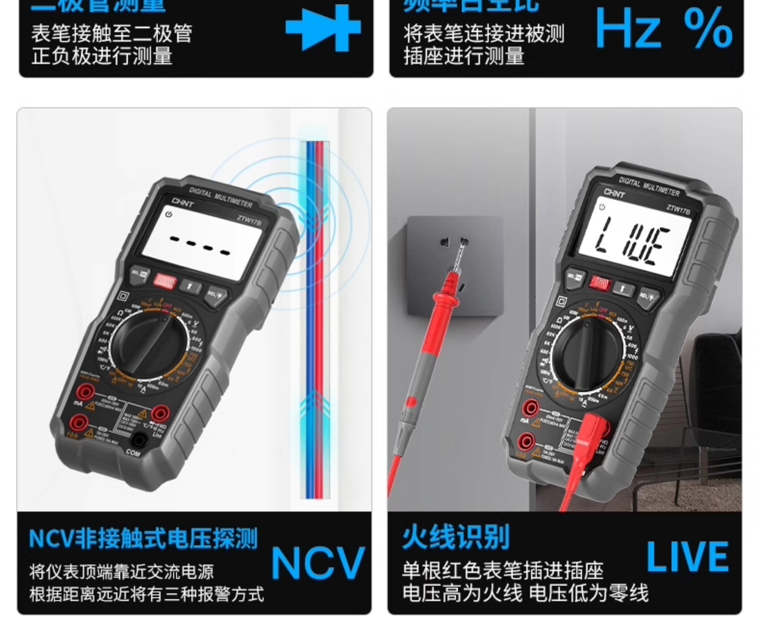 • ZTW15B [전기 모델] 지능형 화상 방지/제로 라이브 와이어 판단(테스트 리드 + 세라믹 보험 포함)